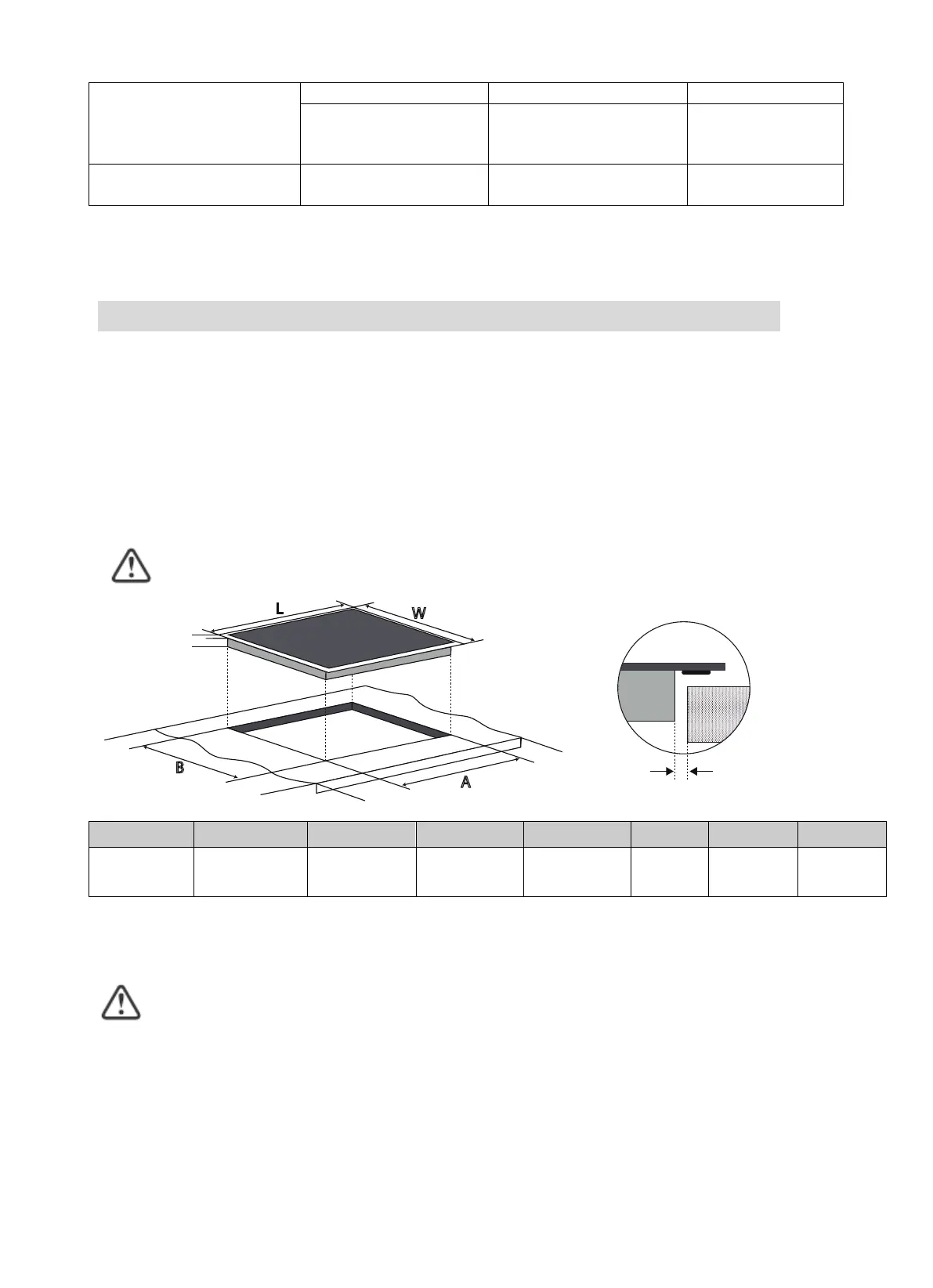 minimálne 5 cm voľného priestoru okolo otvoru varnej dosky. Uistite sa, či je hrúbka pracovnej dosky