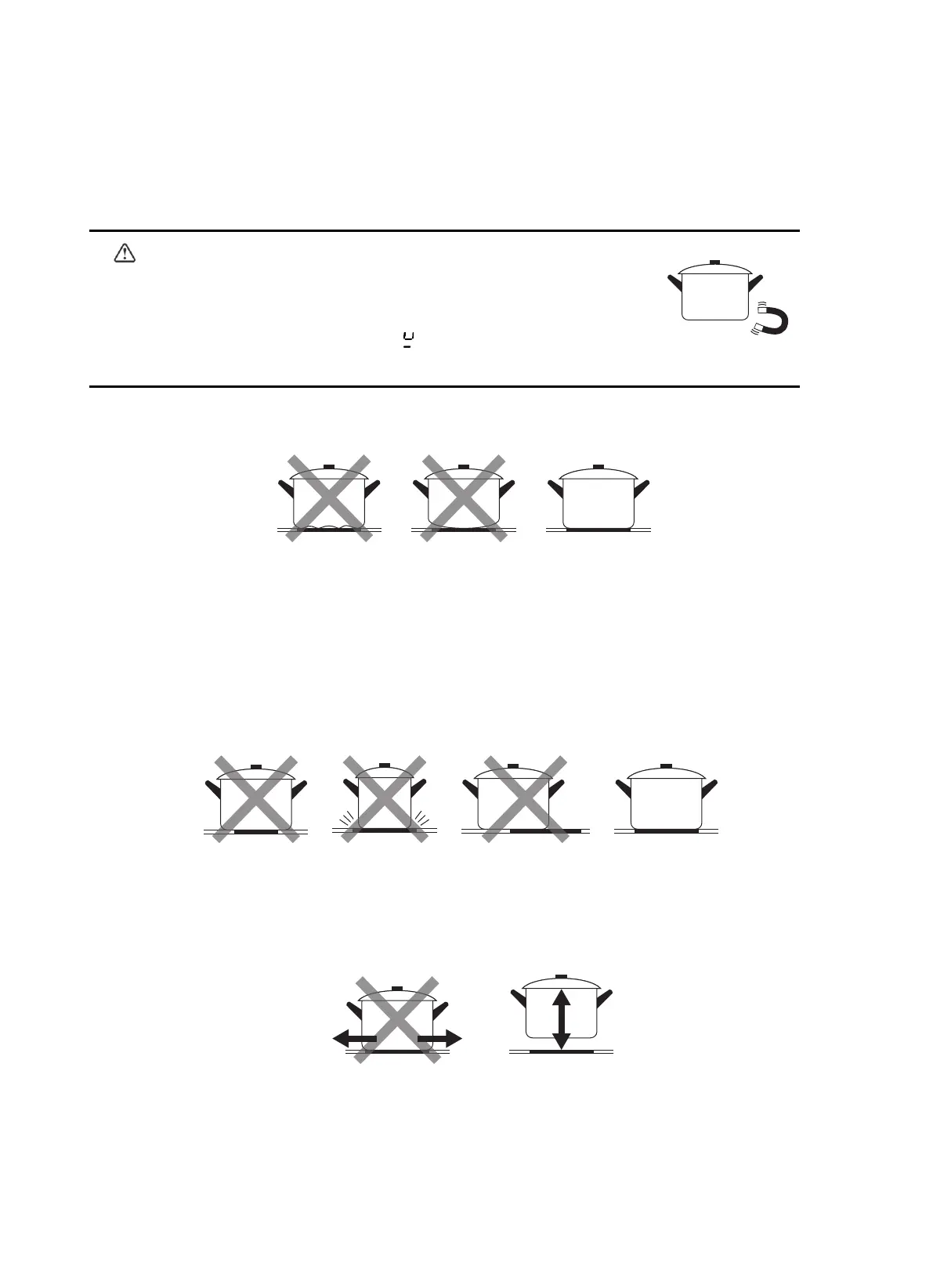 • Nádobí z těchto materiálů není vhodné: čistá nerezová ocel, hliníkové nebo měděné bez magnetického dna, sklo,