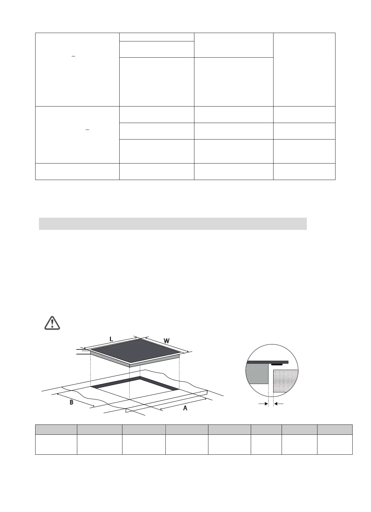 5 cm volného prostoru kolem otvoru varné desky. Ujistěte se, zda je tloušťka pracovní desky nejméně