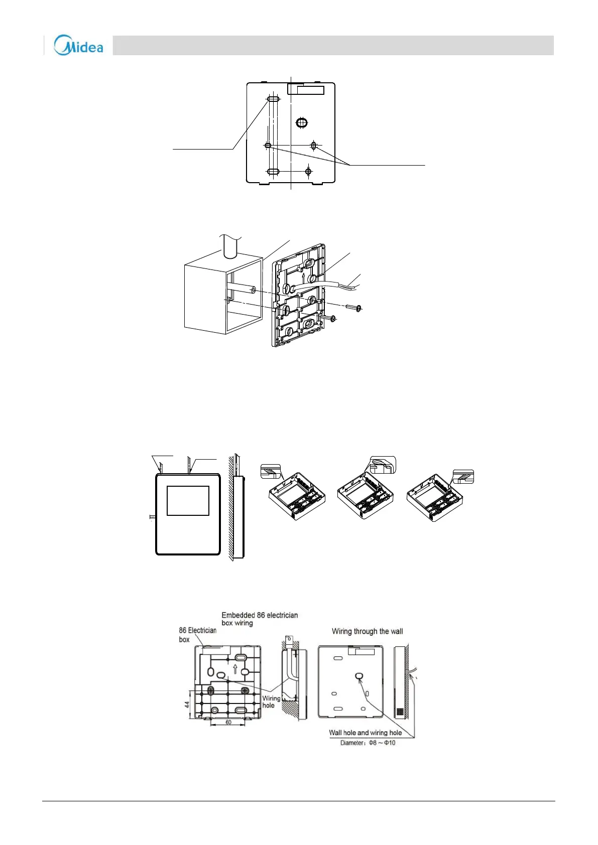 When the wired controller is stalled with electrician box, the back cover of wired controller is already reserved one