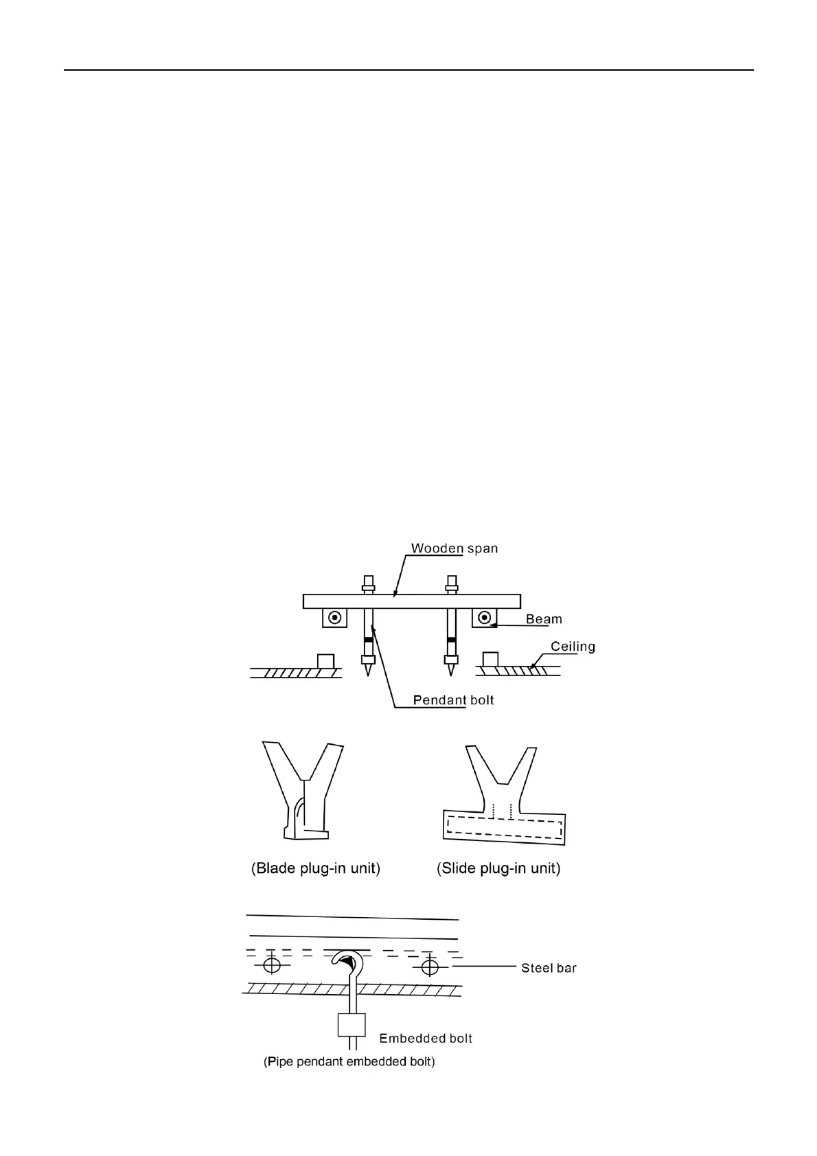 The intervals of the pendant bolts are shown in the following figure.