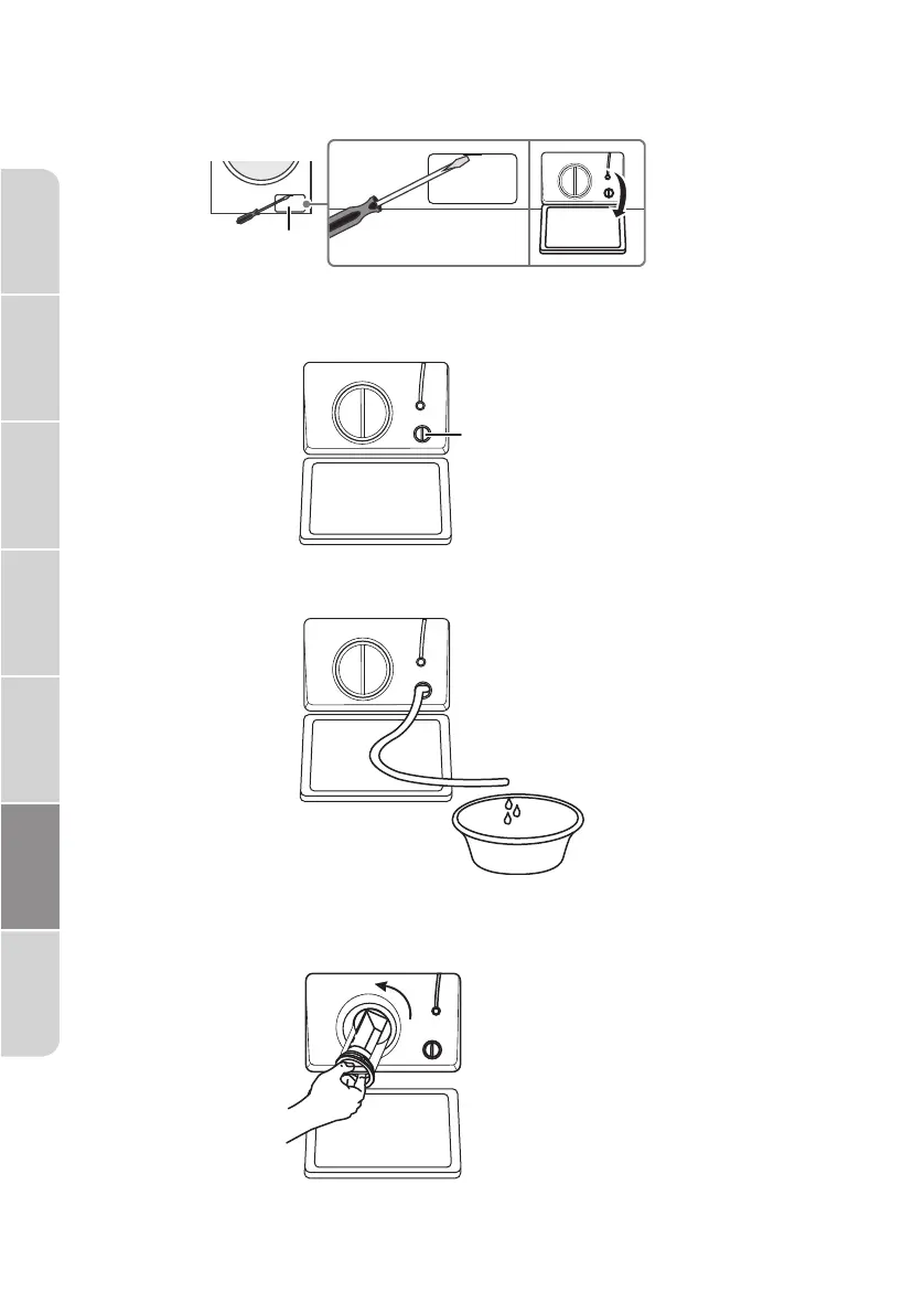 Rotate the cap 90° clockwise, then pull the emergency drain hose out