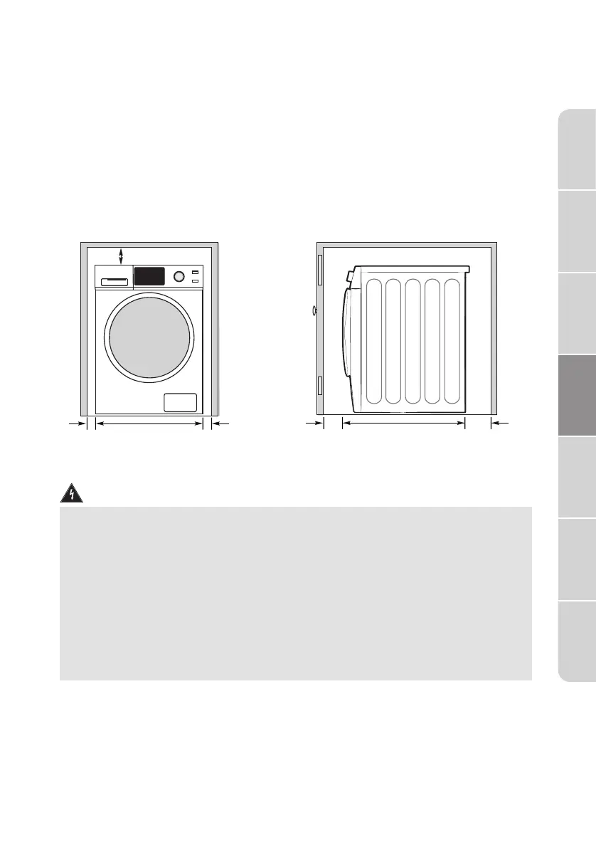 L'espace libre minimum entre la laveuse et les murs adjacents ou d'autres