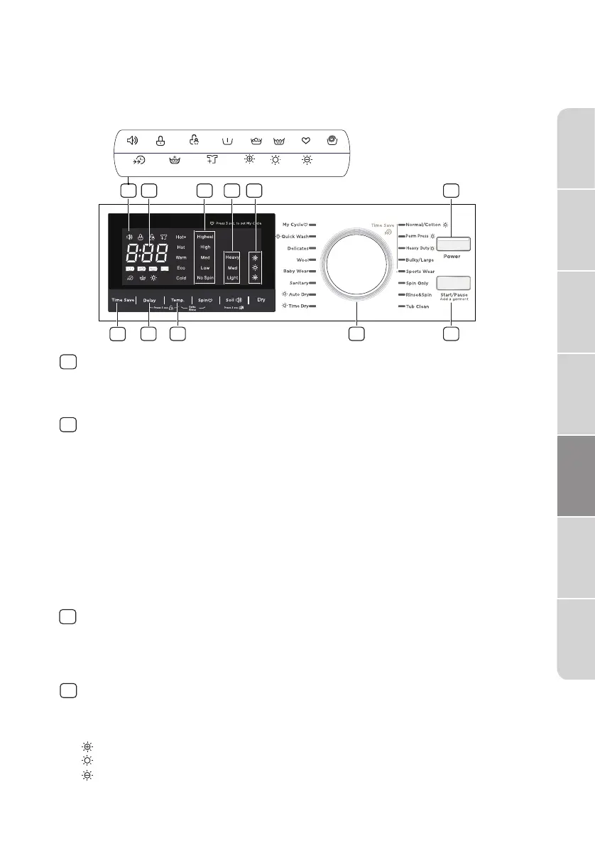 Quand la laveuse est en fonctionnement, l'affichage montre le