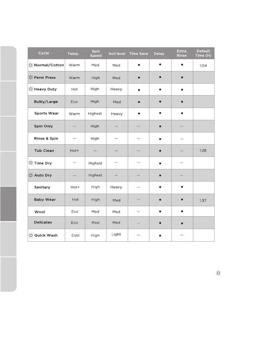 La fonction de séchage peut être choisie pour ces programmes avec .
