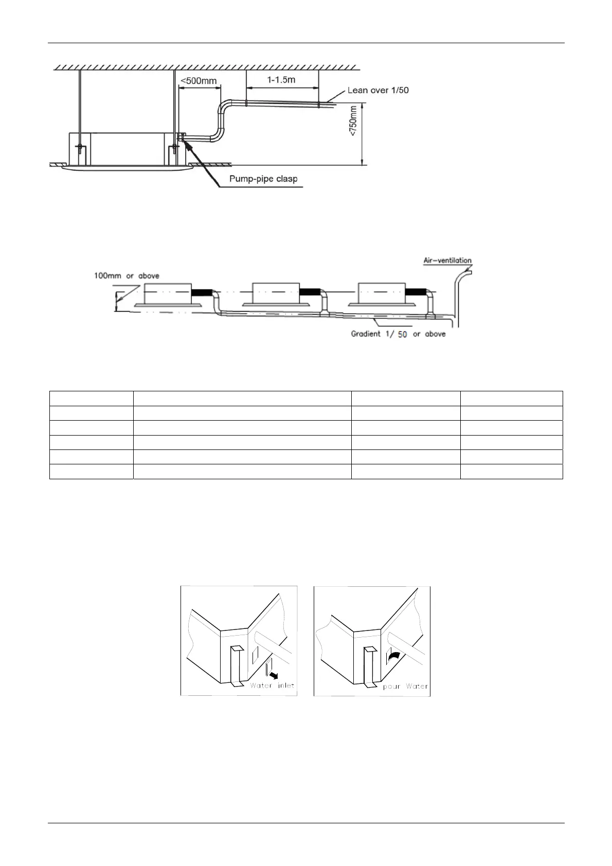 2). Indoor unit with drain pump and indoor unit without drain pump should be in different drainage system.