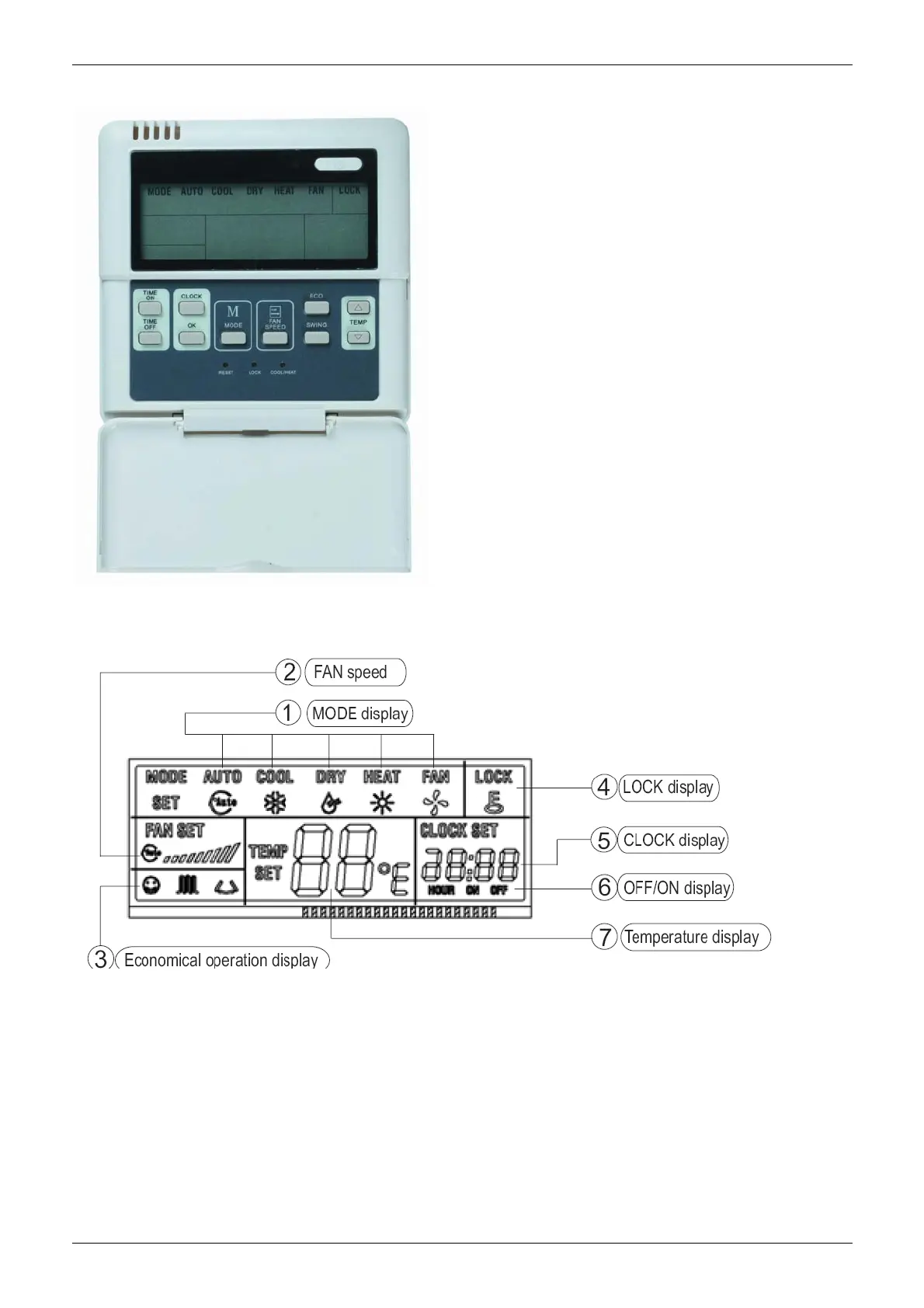 NAME AND FUNCTION OF LCD ON THE WIRE CONTROLLER