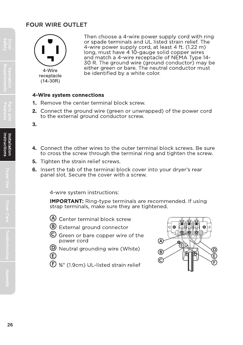 cord and appliance neutral grounding wire. Tighten screw.