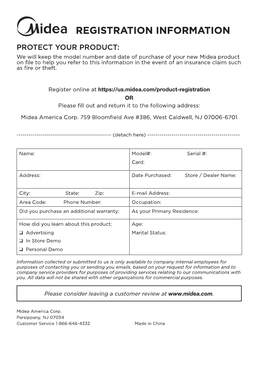 Product registration is not mandatory. Failure to complete and return the card or