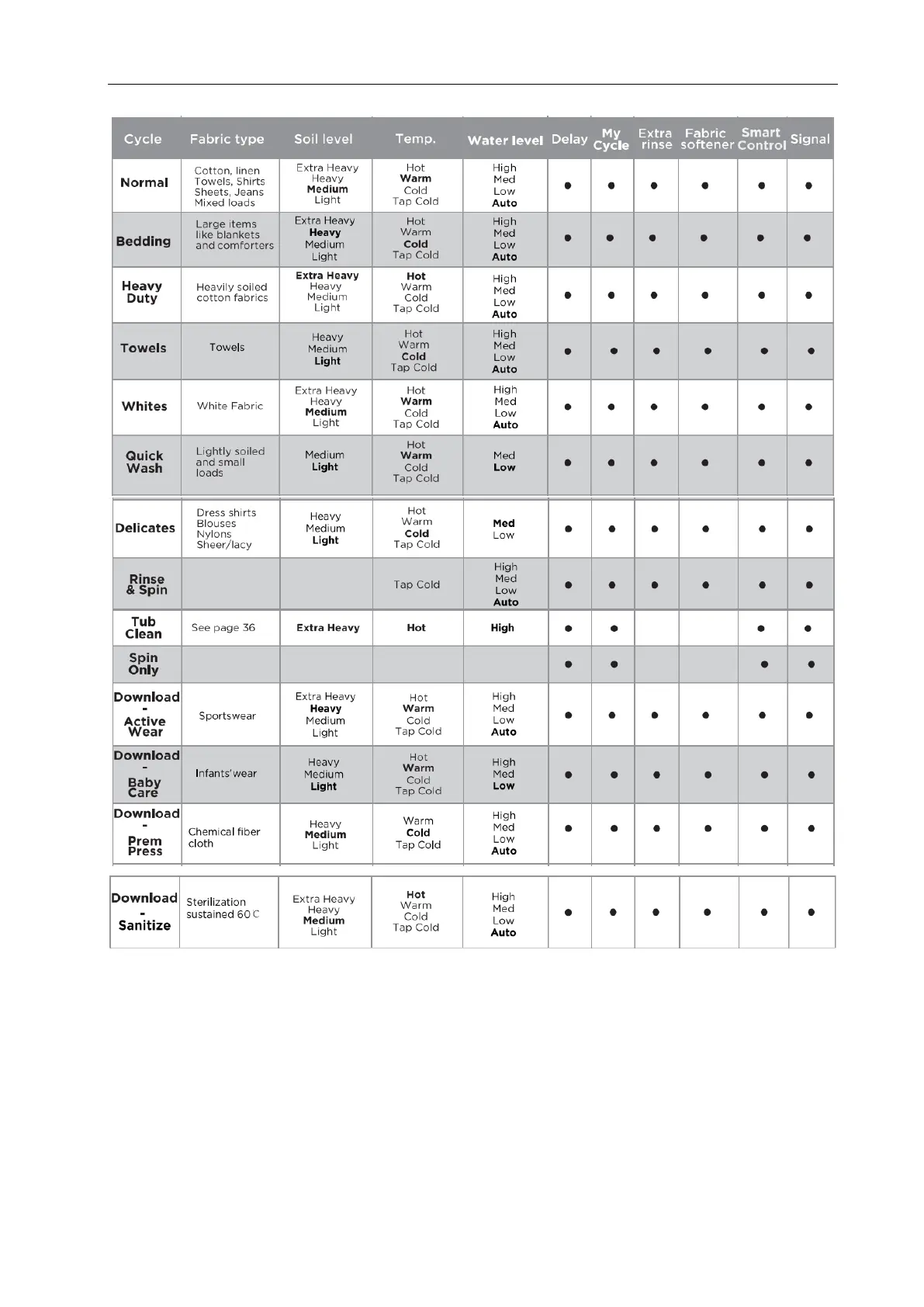 * Table in grey is an initial setting. Dots are all optional functions you can select.