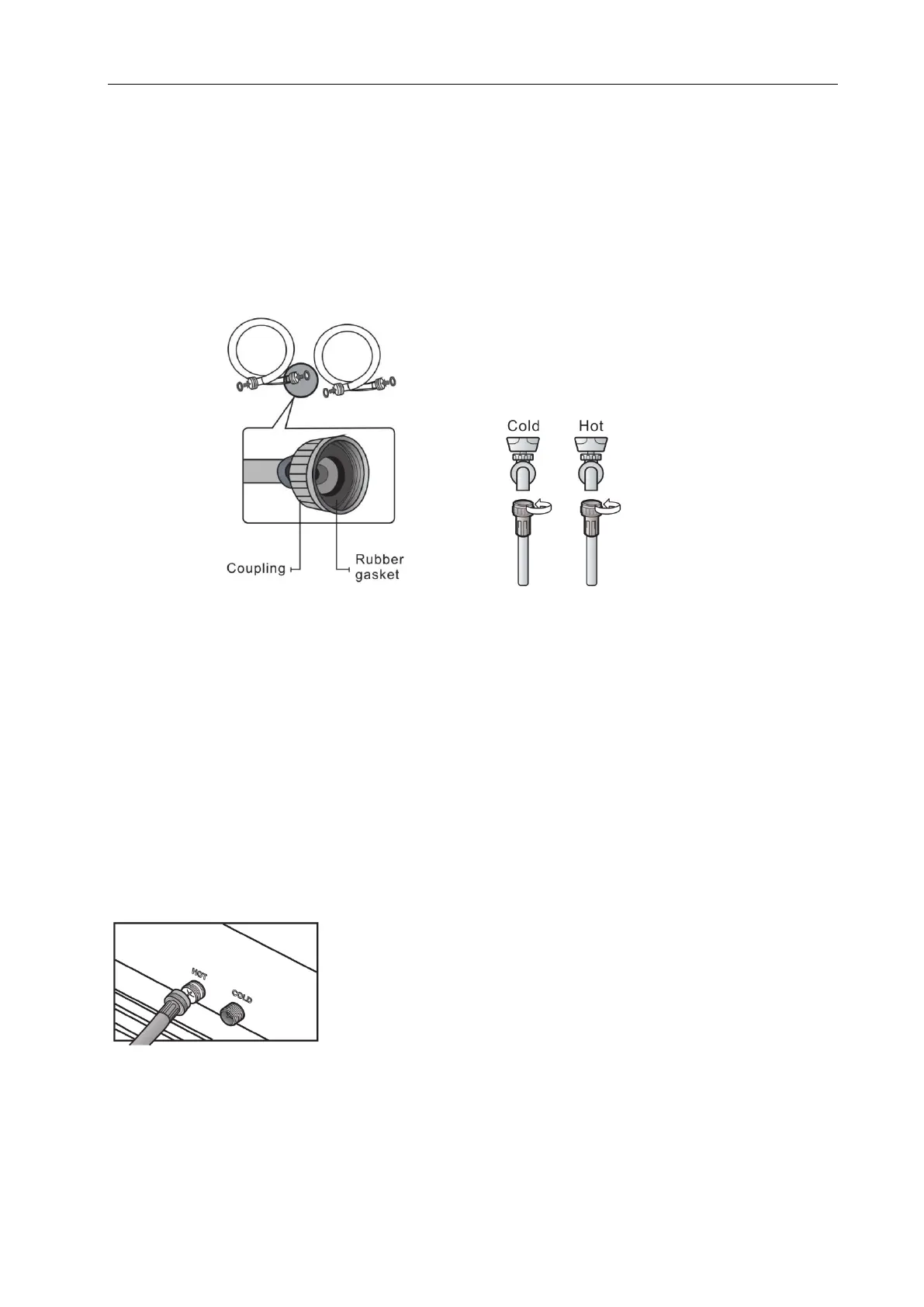 hose. Installing the water supply hoses without rubber gaskets can cause water leakage. When you initially install