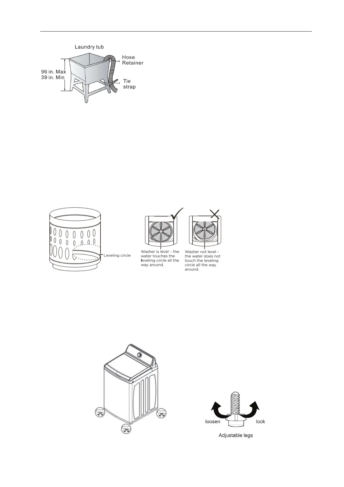 DO NOT use your washing machine without leveling. It may result in malfunction caused by the production