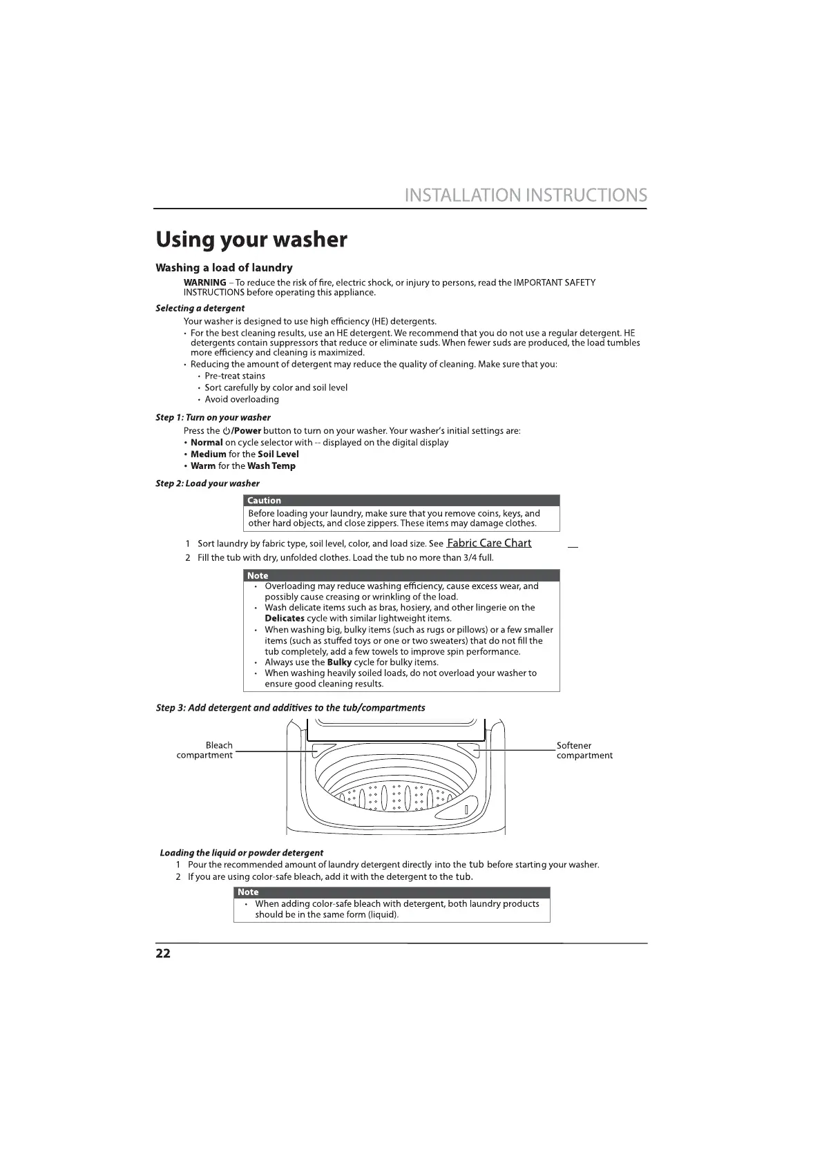 Midea MLV41N1AWWC - Using Your Washer; Washing a Load of Laundry