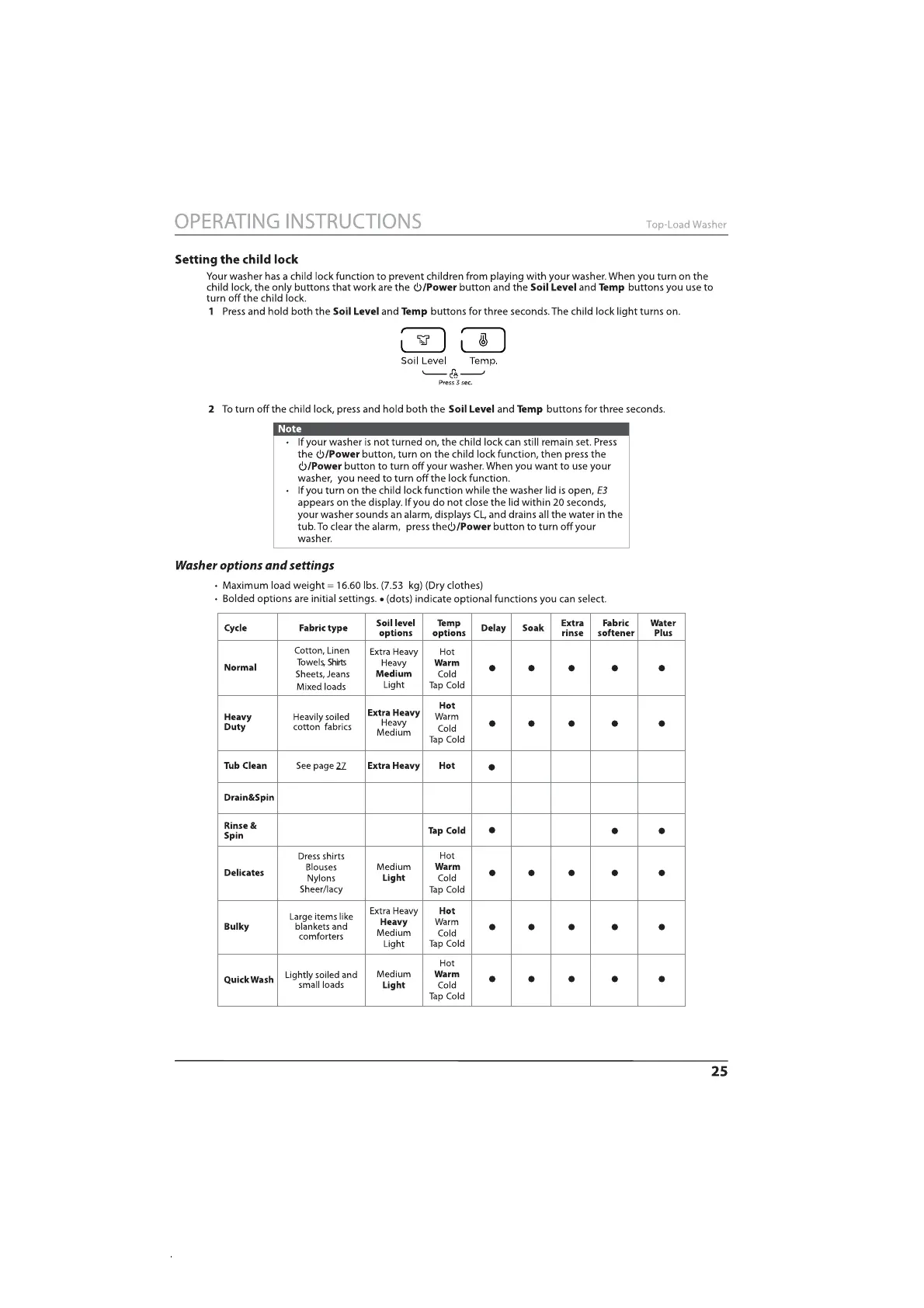 Midea MLV41N1AWWC - Washer Options and Settings Summary