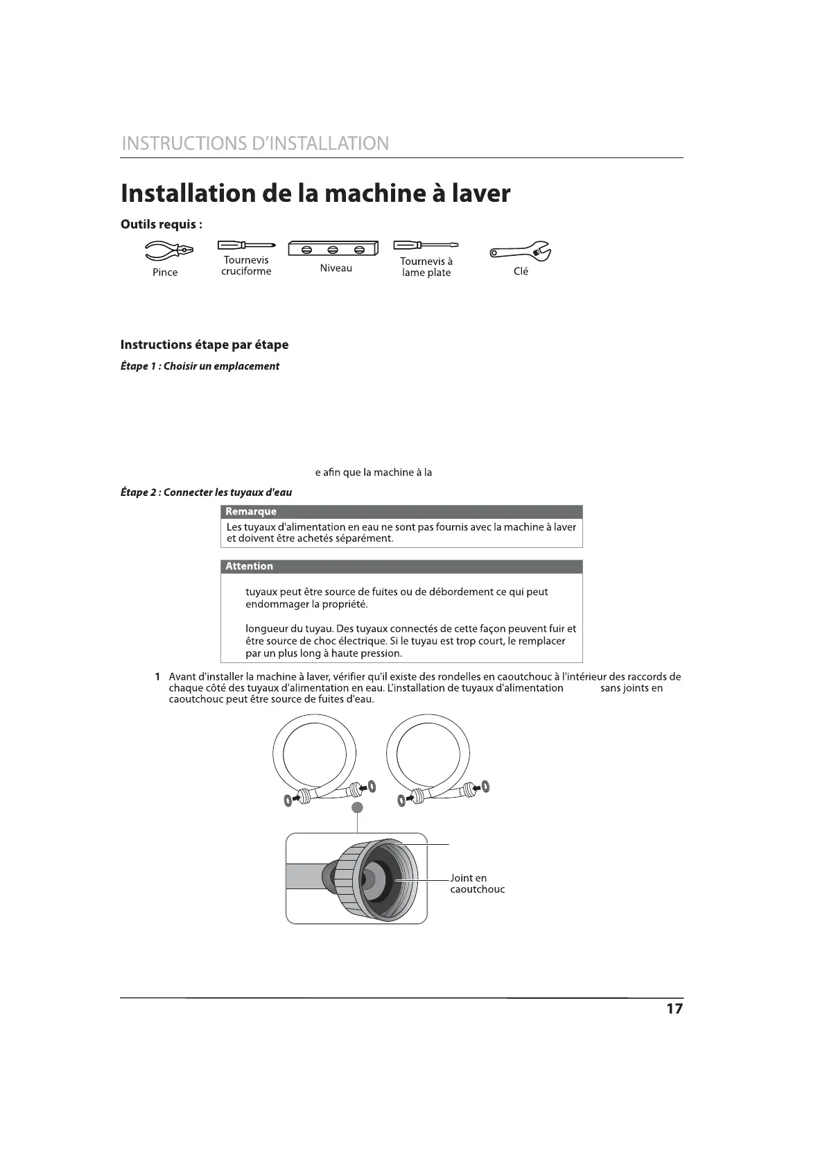 Utiliser des tuyaux d'alimentation en eau neufs. L'utilisation de vieux