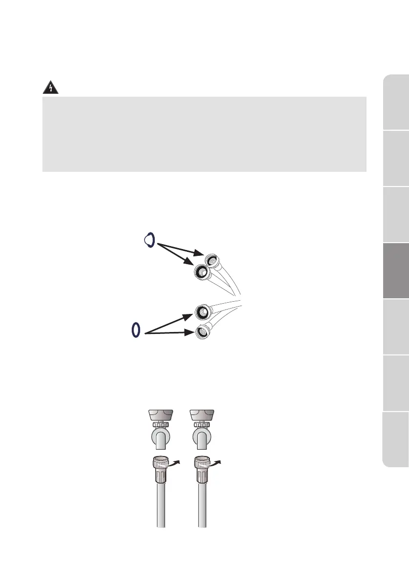 en ambos extremos de cada nueva manguera de agua. Retire las