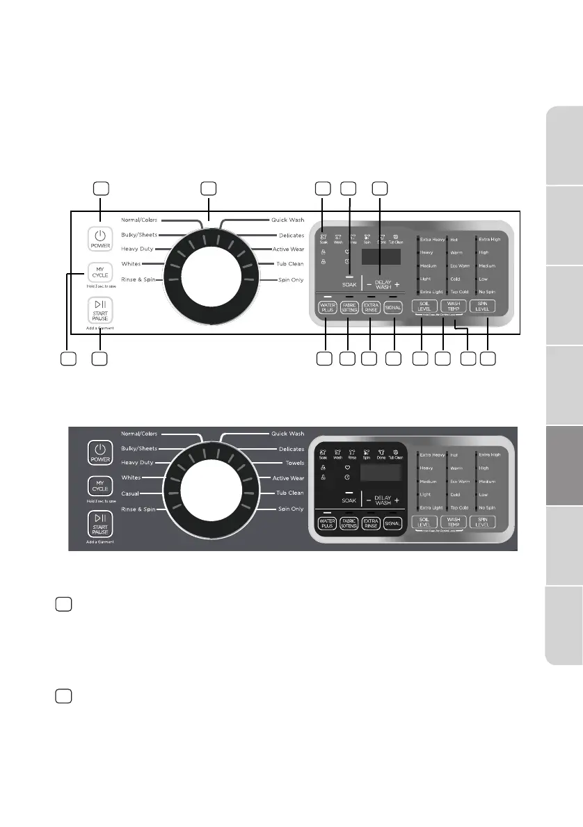 Gire para seleccionar un ciclo de lavado. El ciclo que elija determinan el