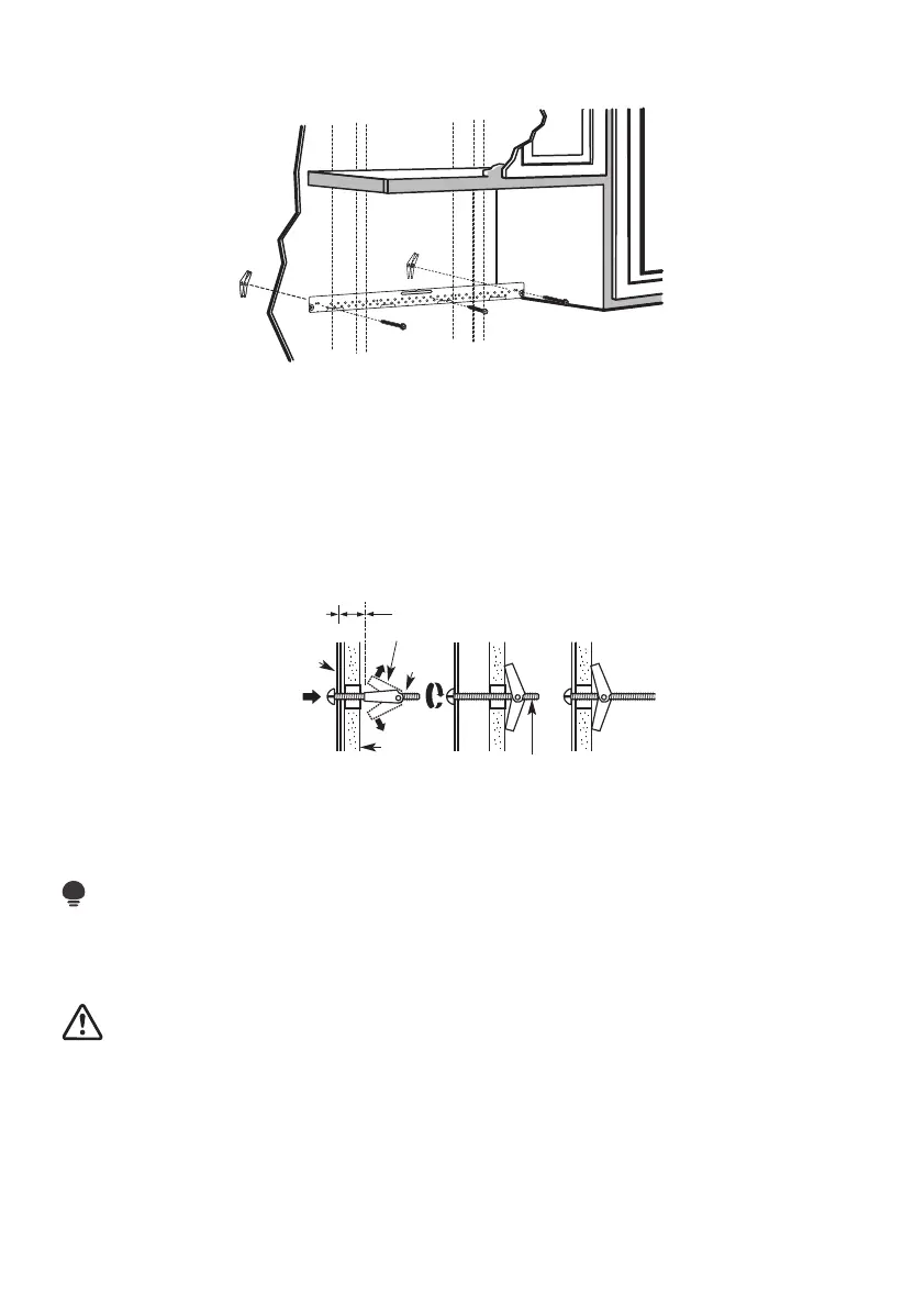 pared de yeso y vuelva a colocar las alas de anclaje a 3⁄ 4" (19 mm) en cada perno.
