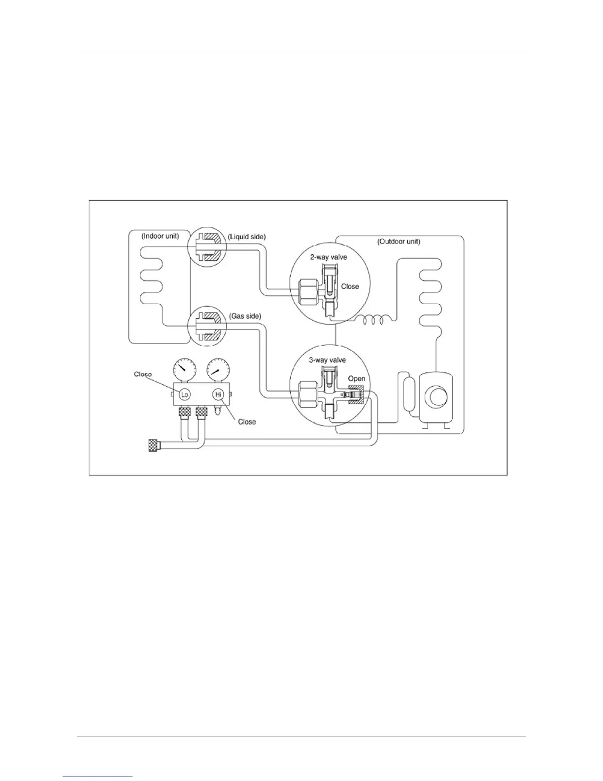 5). Operate the air conditioner at the cooling cycle and stop it when the gauge indicates 0.1MPa.