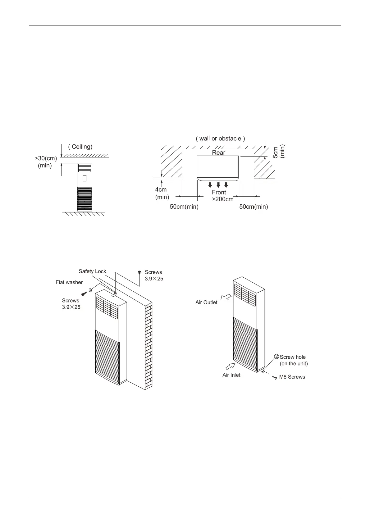 a. A place which provides the spaces around the indoor unit as required above in the diagram.