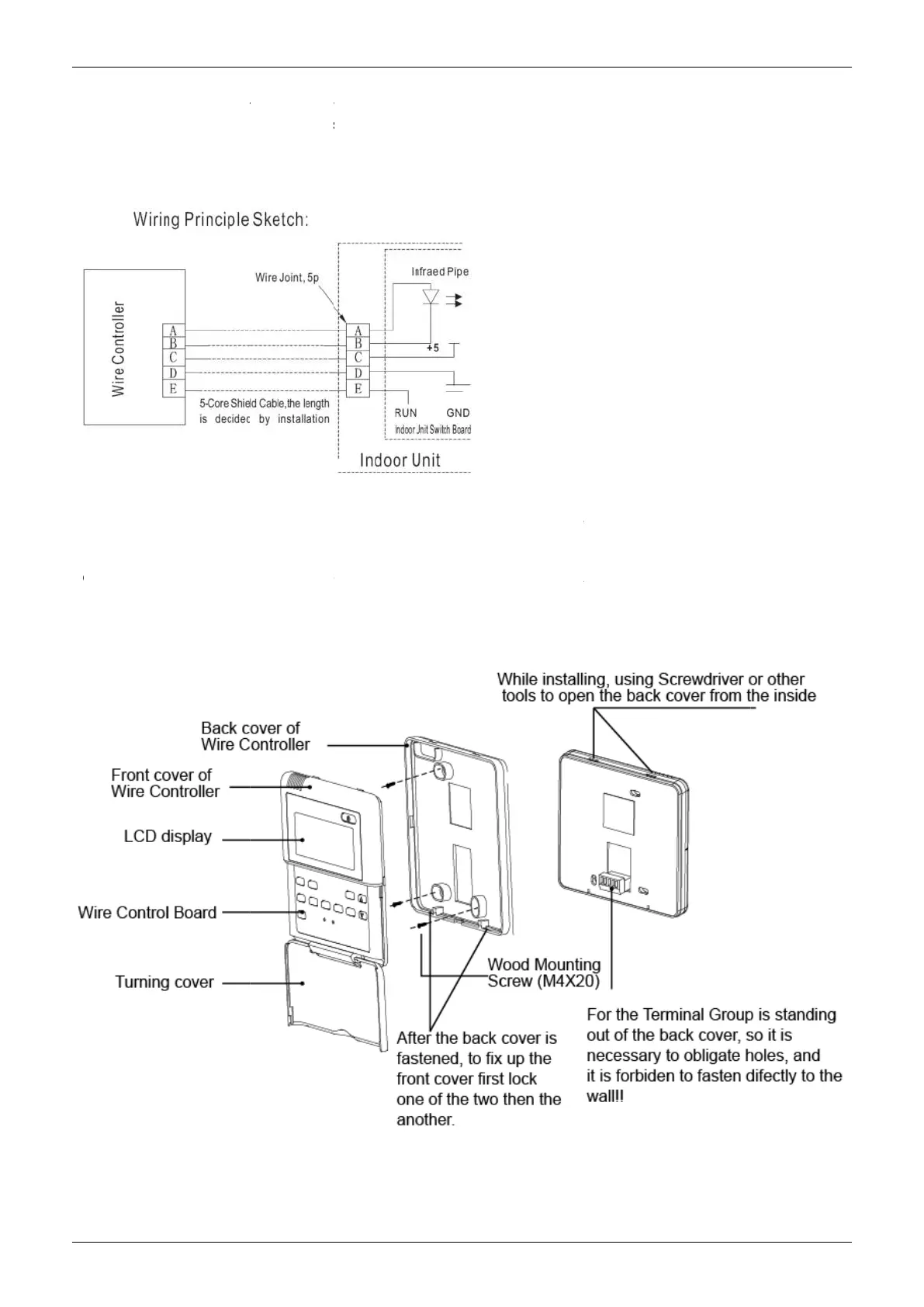 terminal named A, B, C, D, E in indoor unit, and fixing an infrared emitter whose anode and cathode