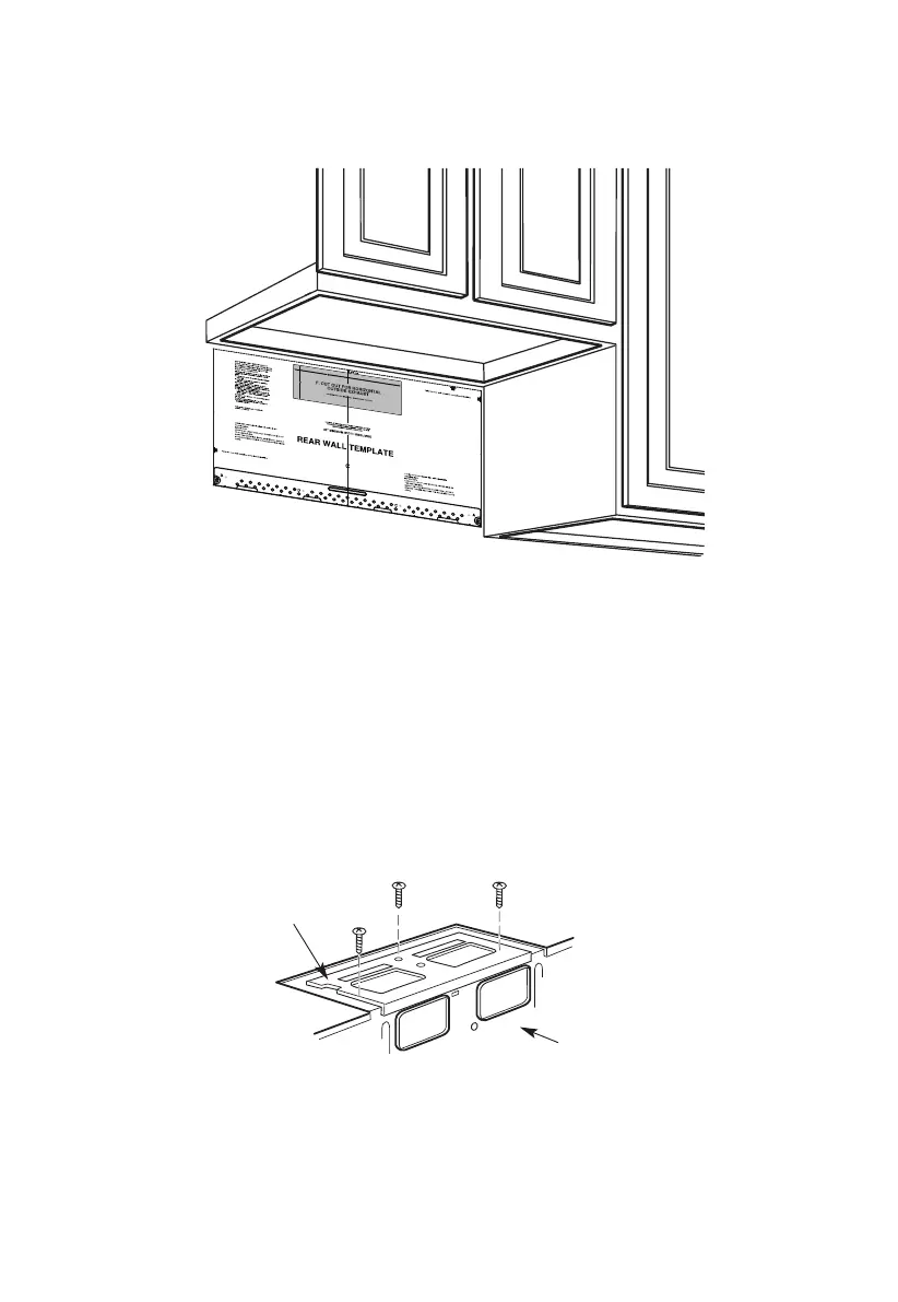 1. Read the instructions on the REAR WALL TEMPLATE. Tape it to the rear wall.
