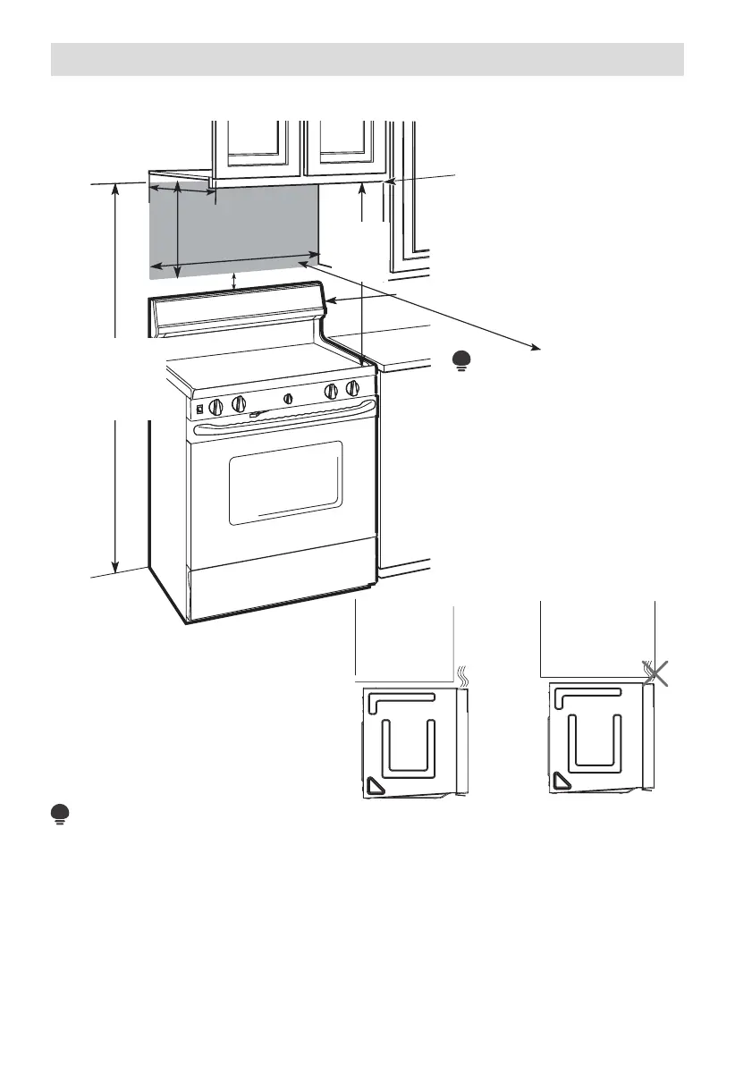• El espacio entre los gabinetes debe ser de 30" (76.2 cm) de ancho y libre de obstrucciones.