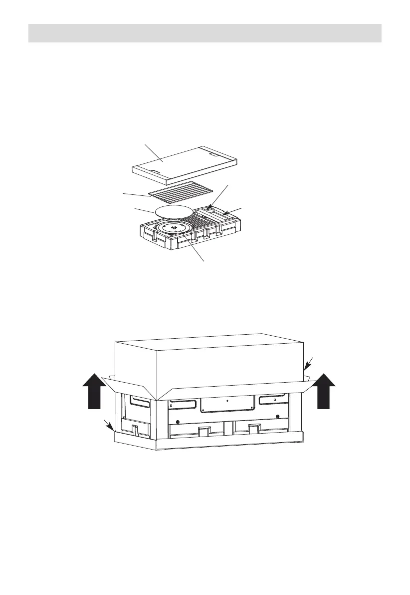 1. Retire la cubierta superior de cartón, las instrucciones de instalación, uso y cuidado,