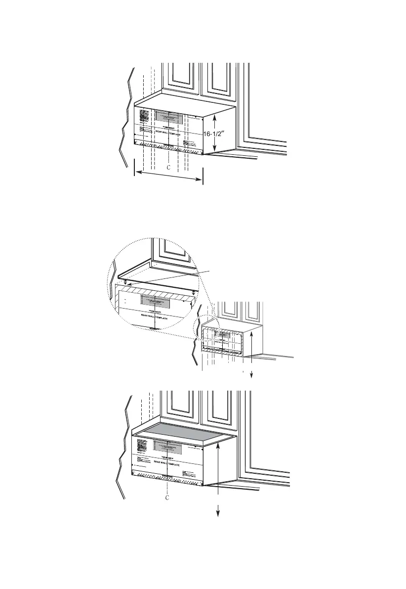 Posición de la placa: debajo de la parte inferior del gabinete empotrado enmarcado
