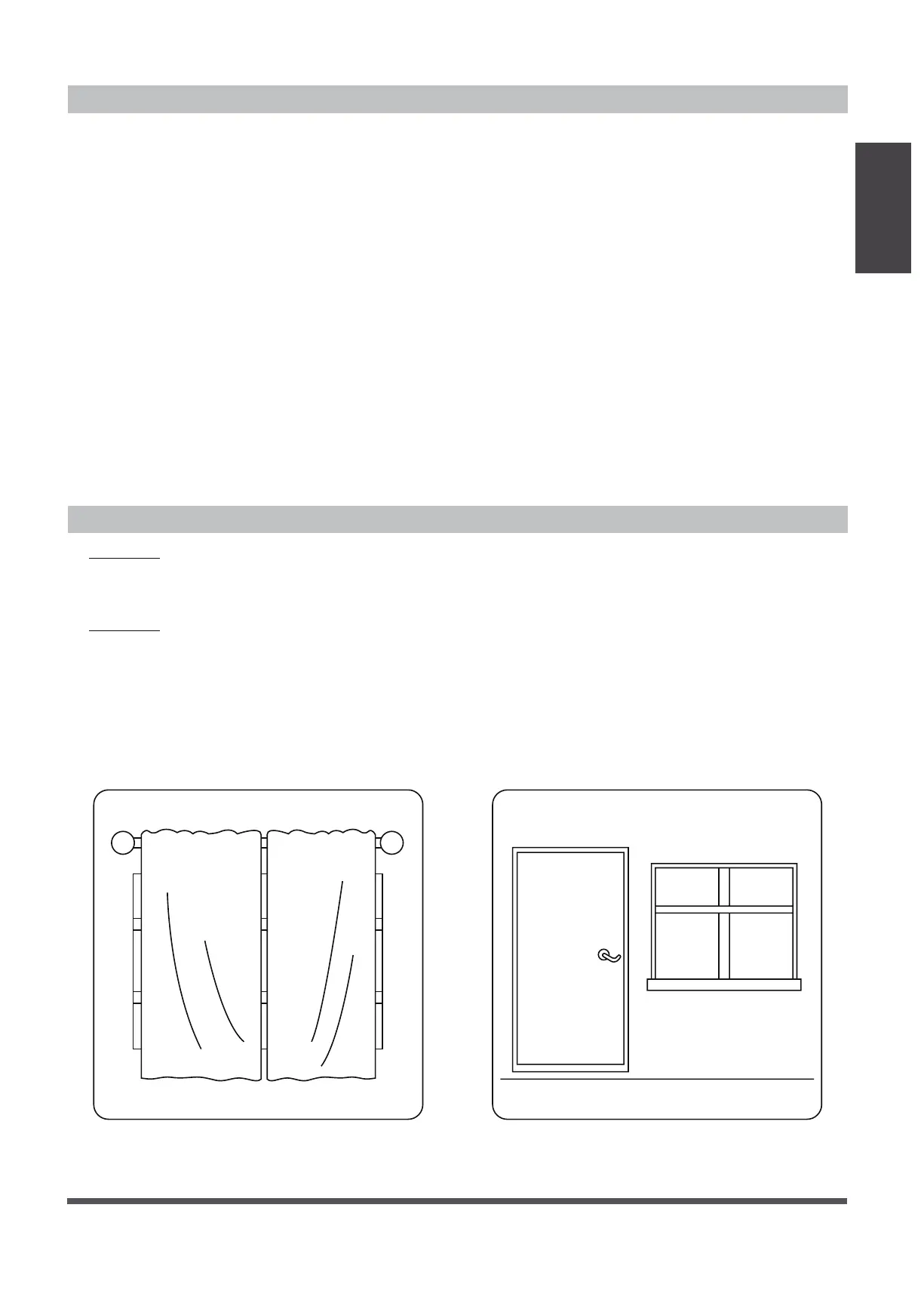 • Doors and windows should be kept closed to keep cool or warm air in the room.