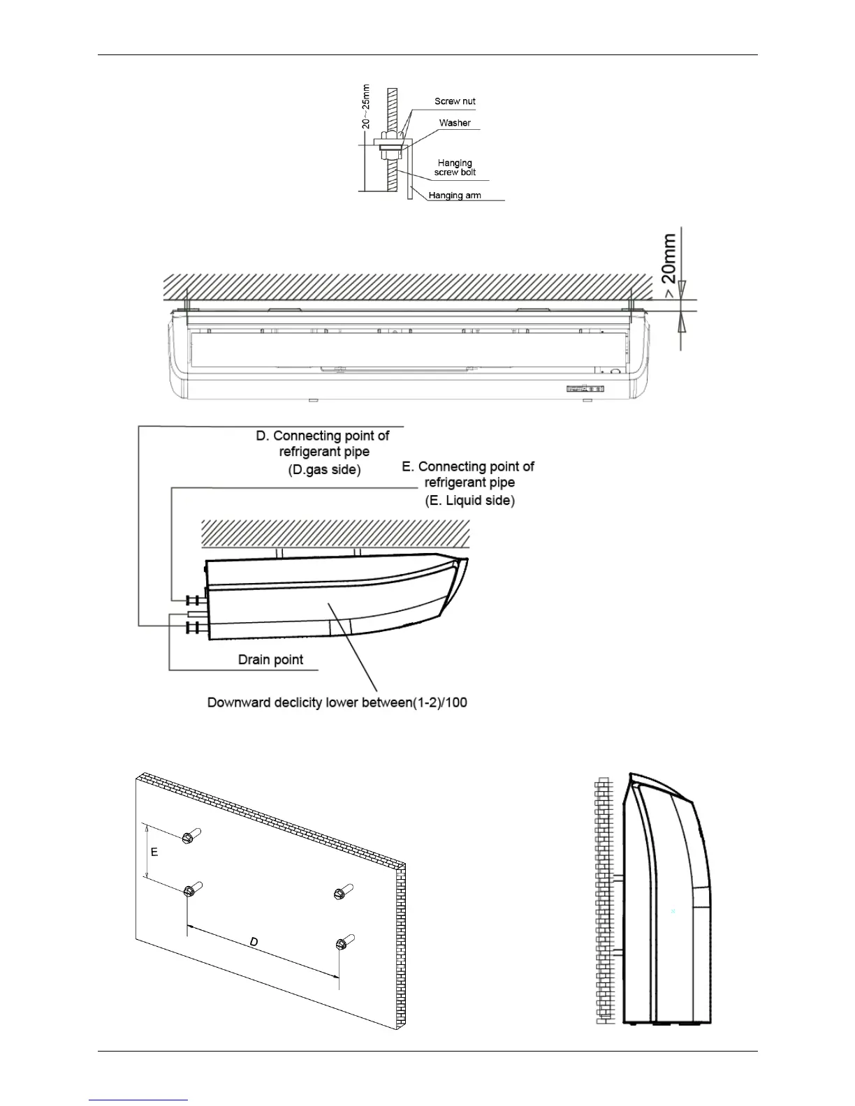 Hang the indoor unit by insert the tapping screws into the hanging arms on the main unit. (The bottom of