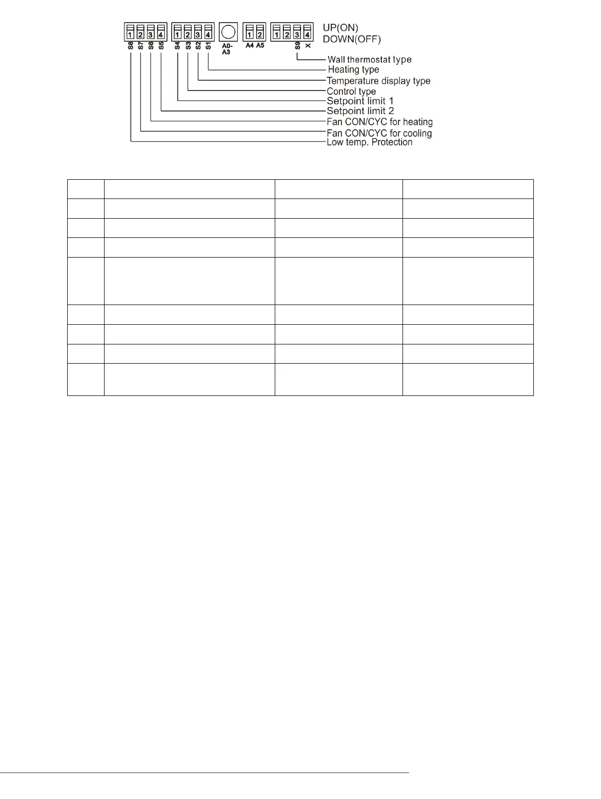 - A wired wall thermostat can be connected to the unit .If it is, this dip switch must be moved to the