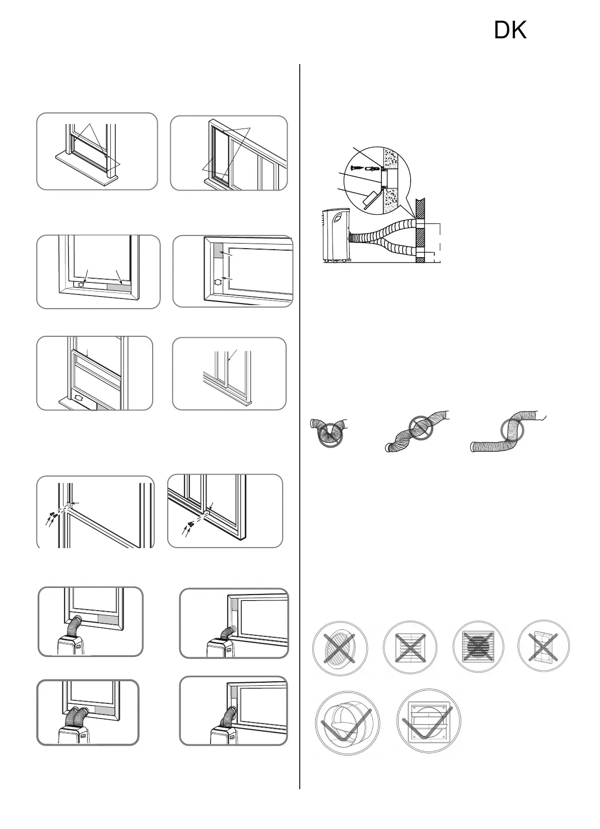 Bemærk: Når samlingen af udledningsslangen og justerbare vindue slider