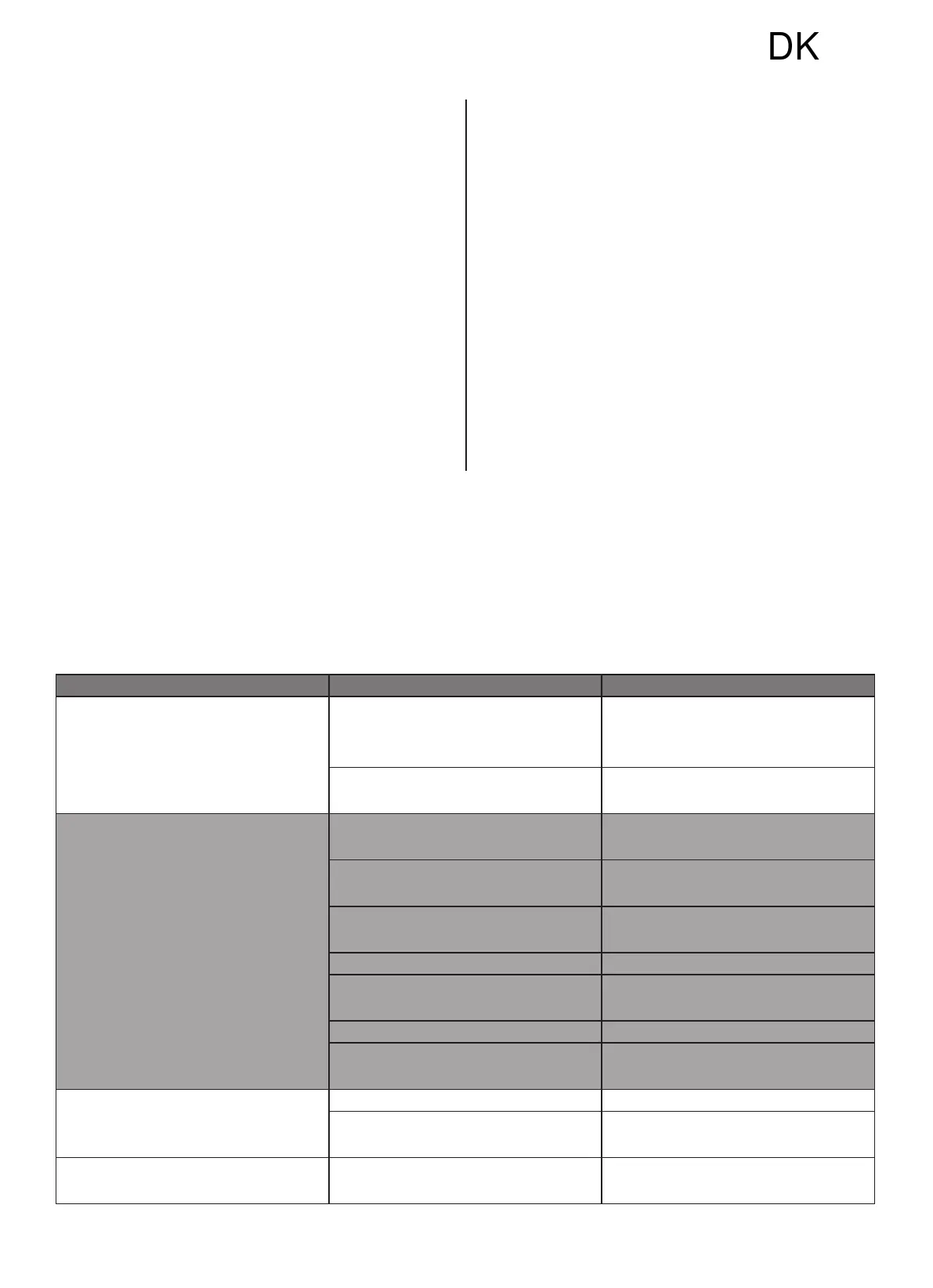 Kontroller enheden i henhold til nedenstående tabel før du beder om vedligeholdelse:
