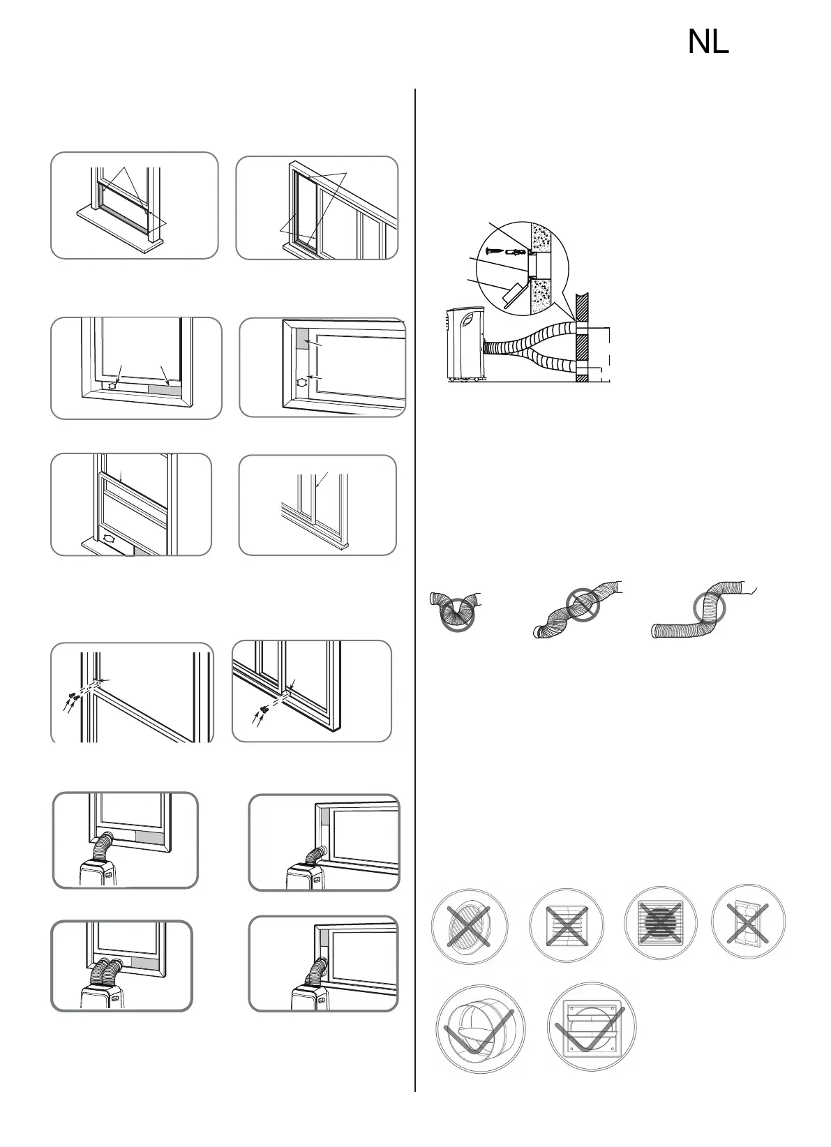 Opmerking: Nadat de uitlaatslang en verstelbare raam schuifregelaar voor-