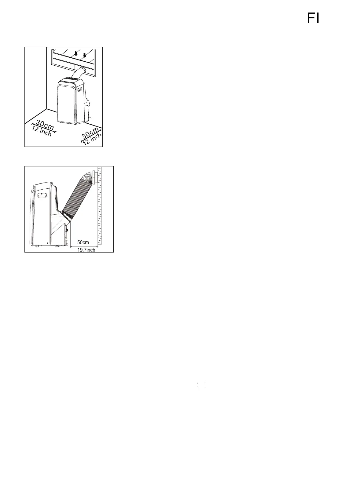 - Laite tulisi sijoittaa vähintään 30cm(12”) päähän lähimmästä