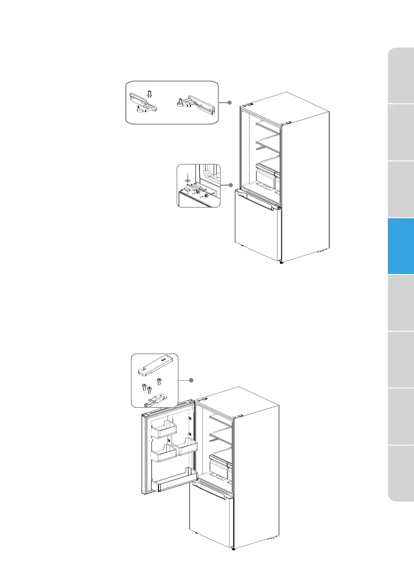 e instálela en el lado superior izquierdo del refrigerador con los tornillos