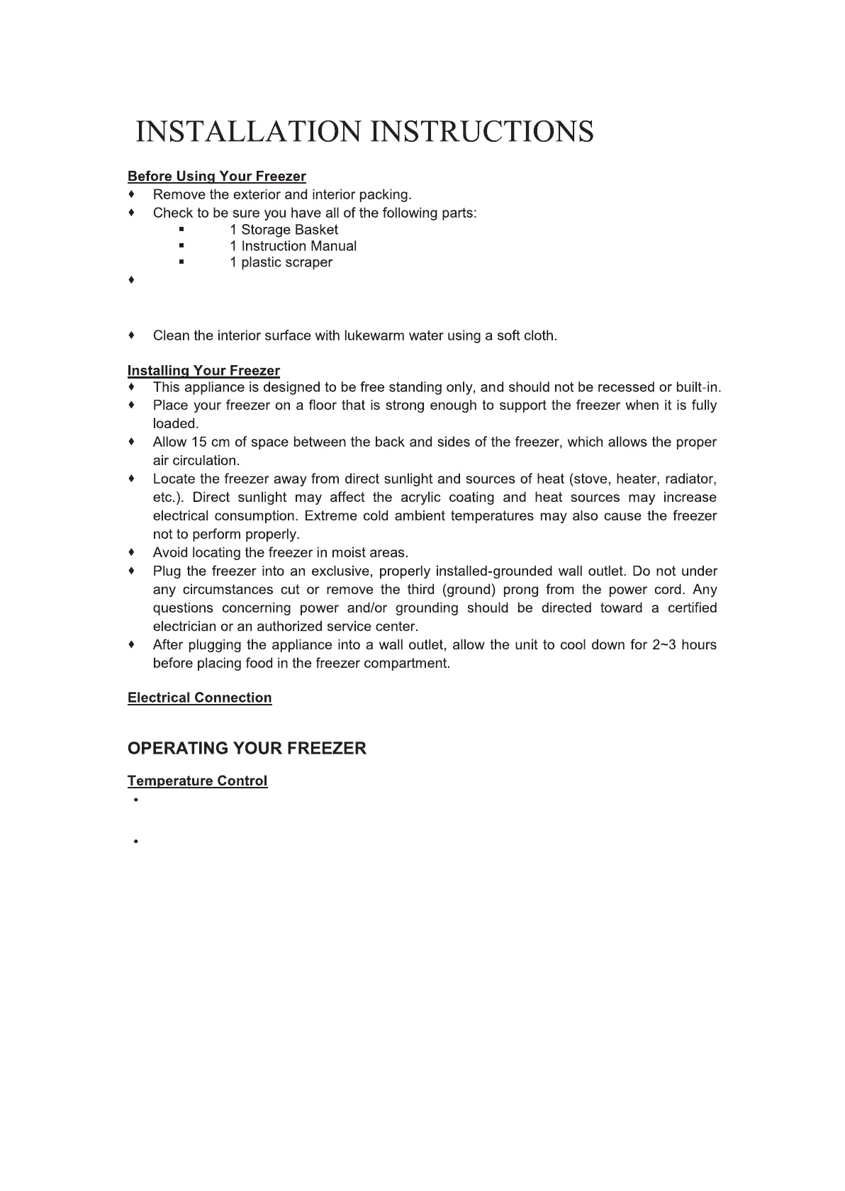 Before connecting the freezer to the power source, let it stand upright for approximately
