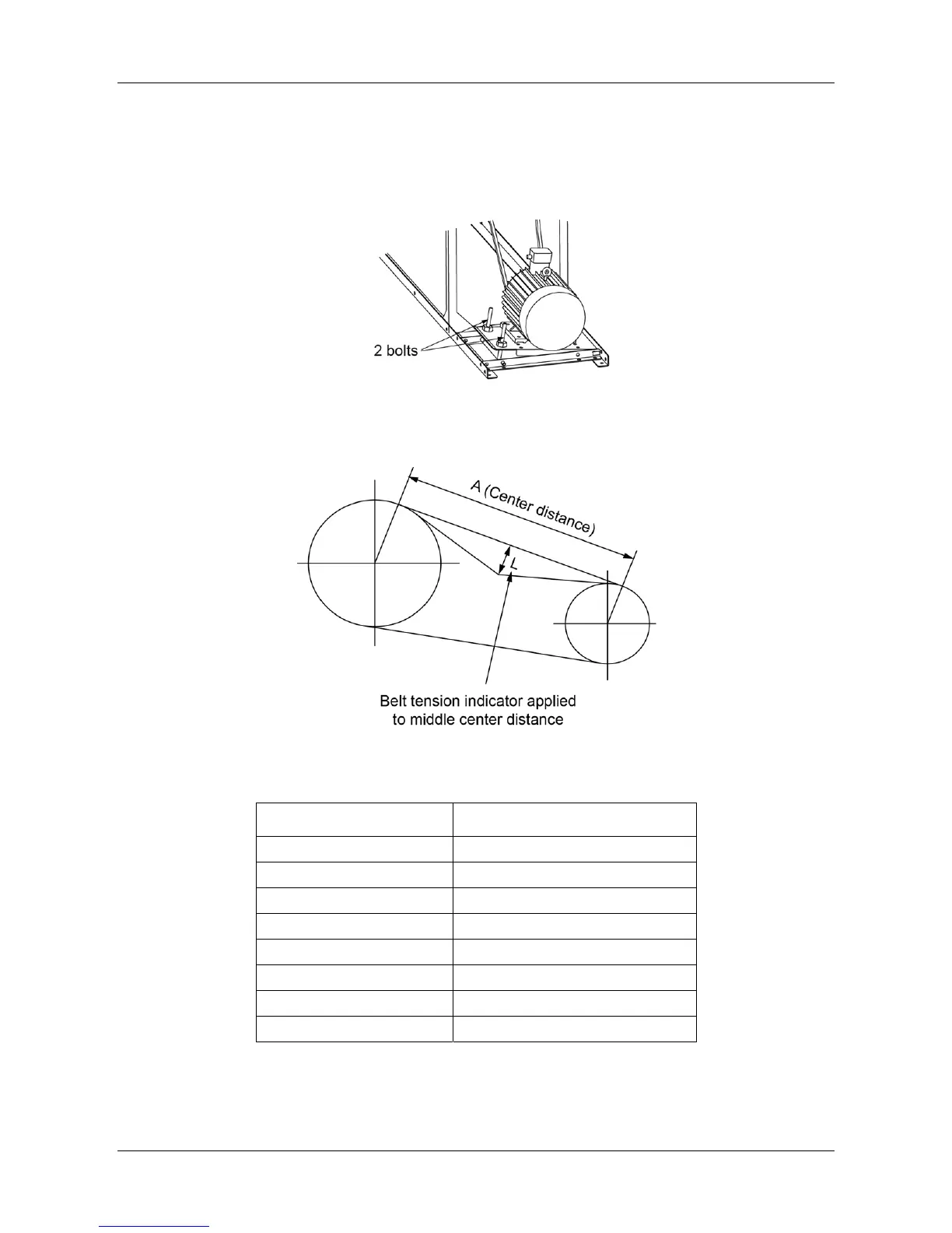 Refer to the following figure, loose 2 bolts, and move the electric motor to adjust belt tension. These