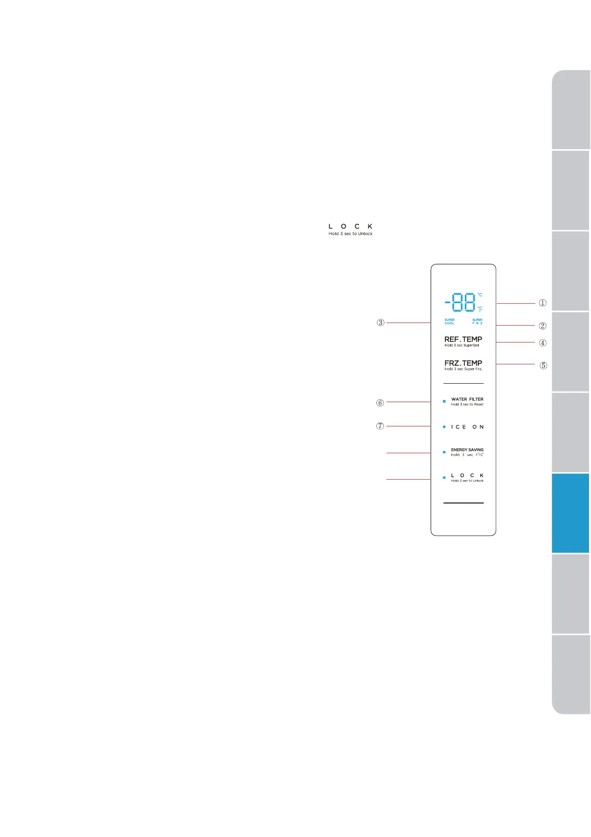 Le panneau des commandes est situé à droite de la porte du congélateur.