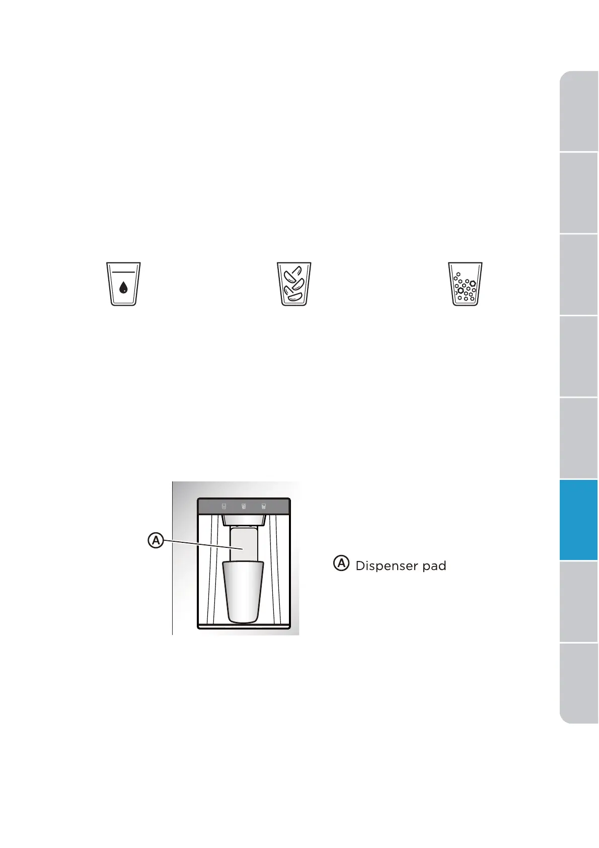 En mode “Actif”, les icônes du distributeur (glaçons, eau, glace pilée) restent