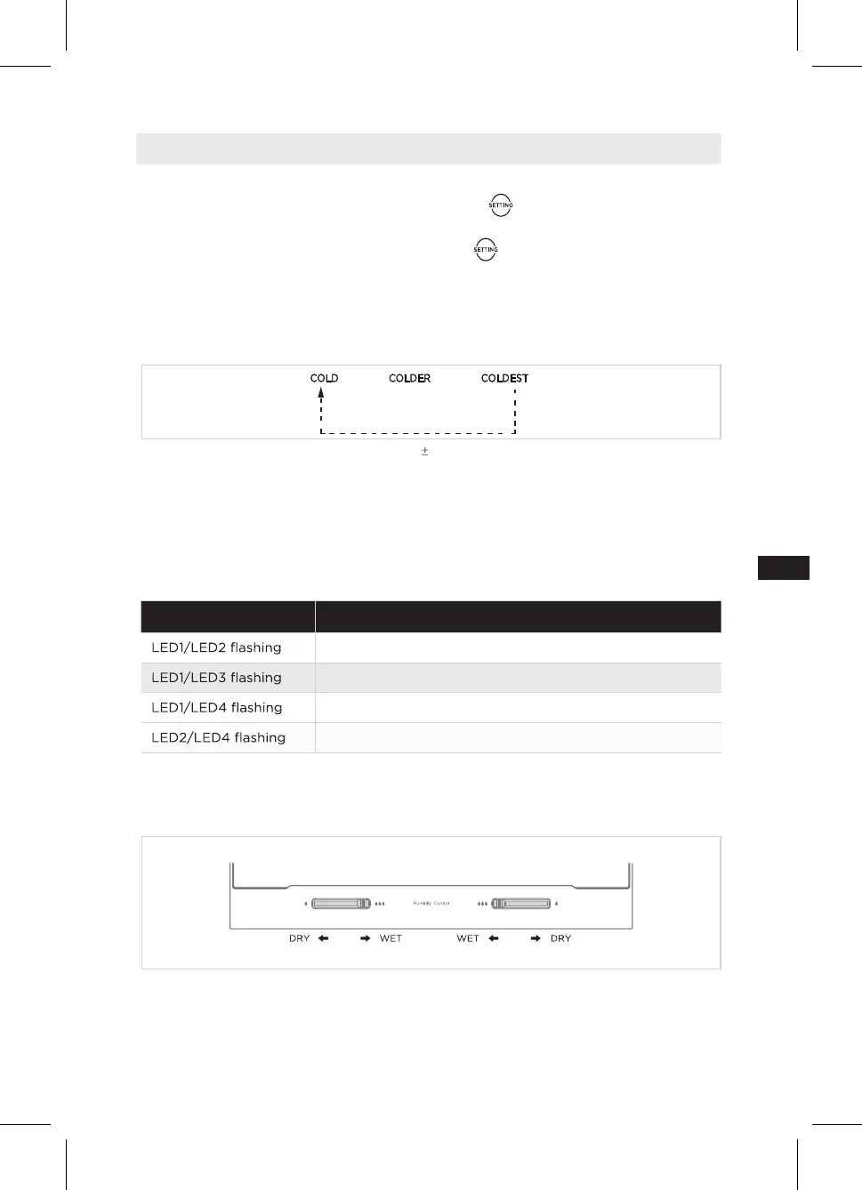 • Press and hold the temperature setting button again for 3 seconds to switch to