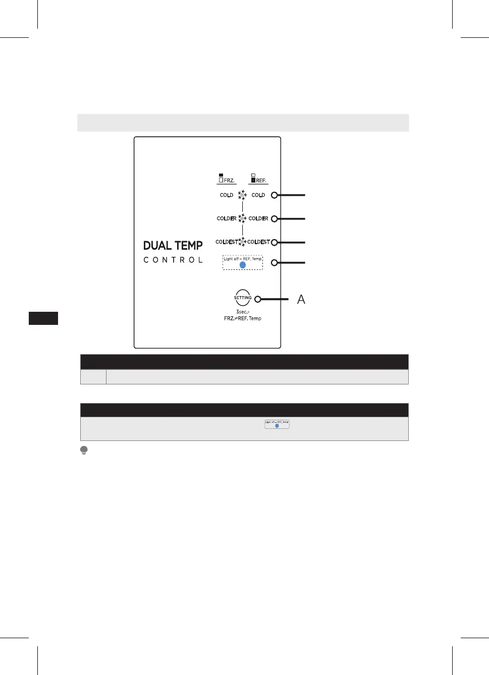 Lors de la première mise sous tension, le voyant est éteint et la température de