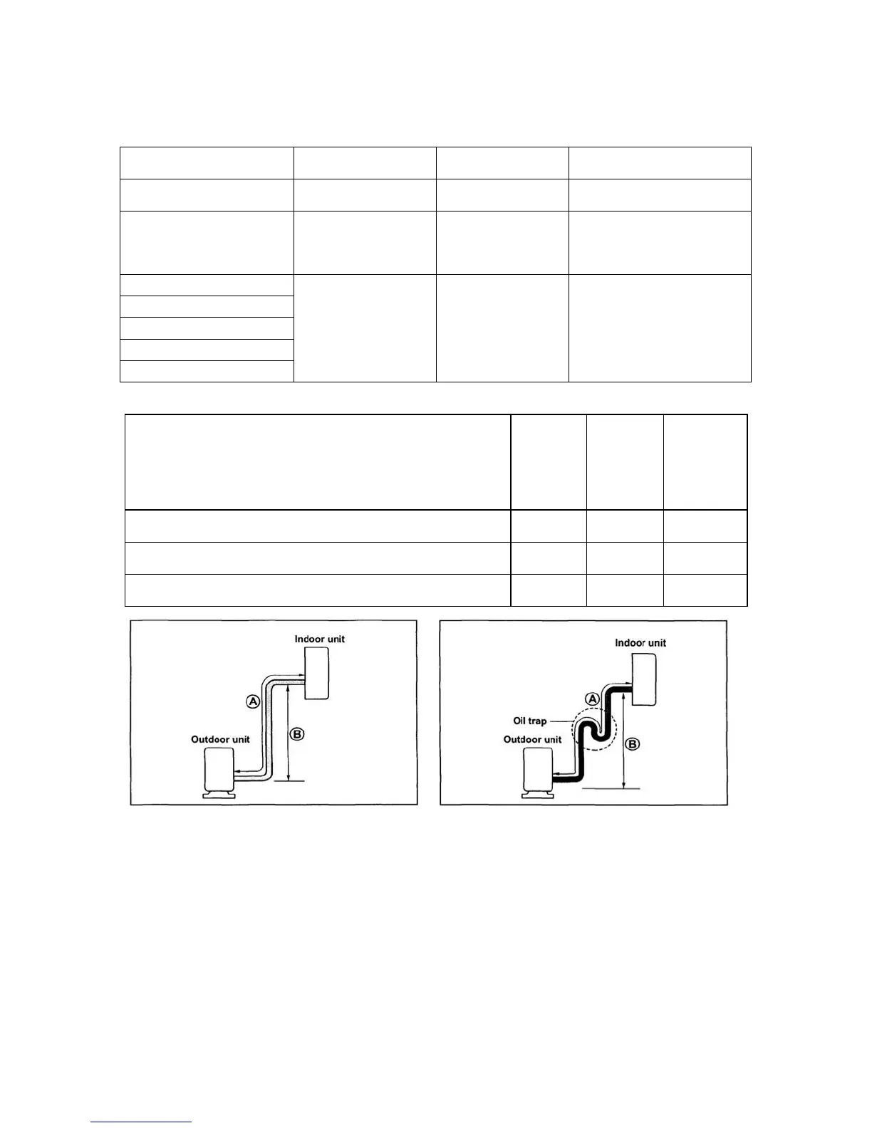 Model Connective pipe length Air purging Additional amount of refrigerant