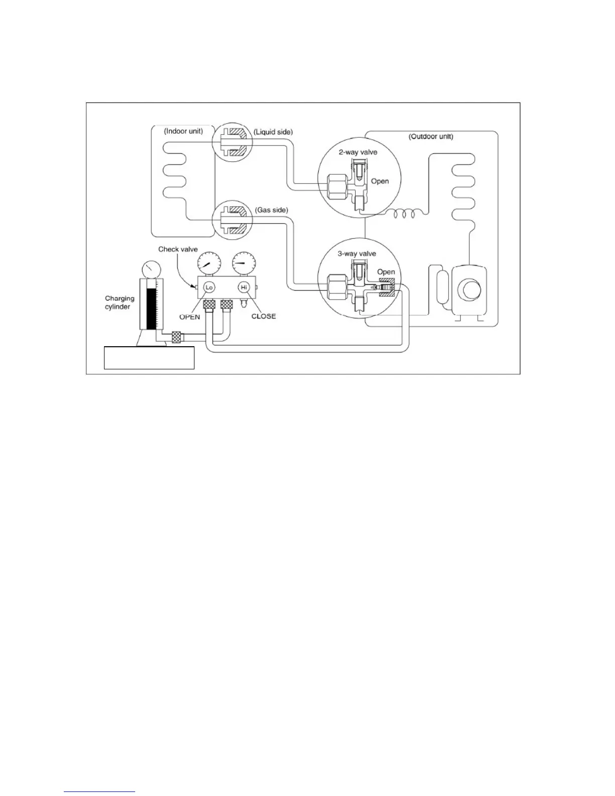 the cylinder. If the refrigerant is R410A, make the cylinder bottom up to ensure liquid charge.
