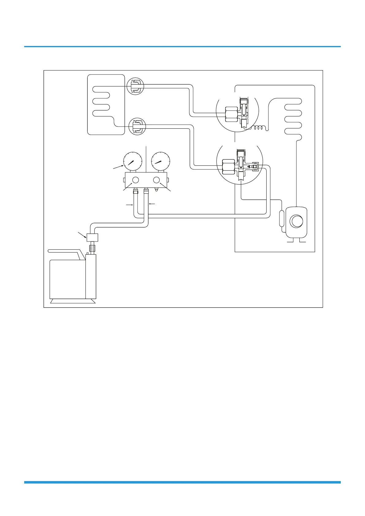 6. Loosen the flare nut of the 3-way valve for 6 or 7