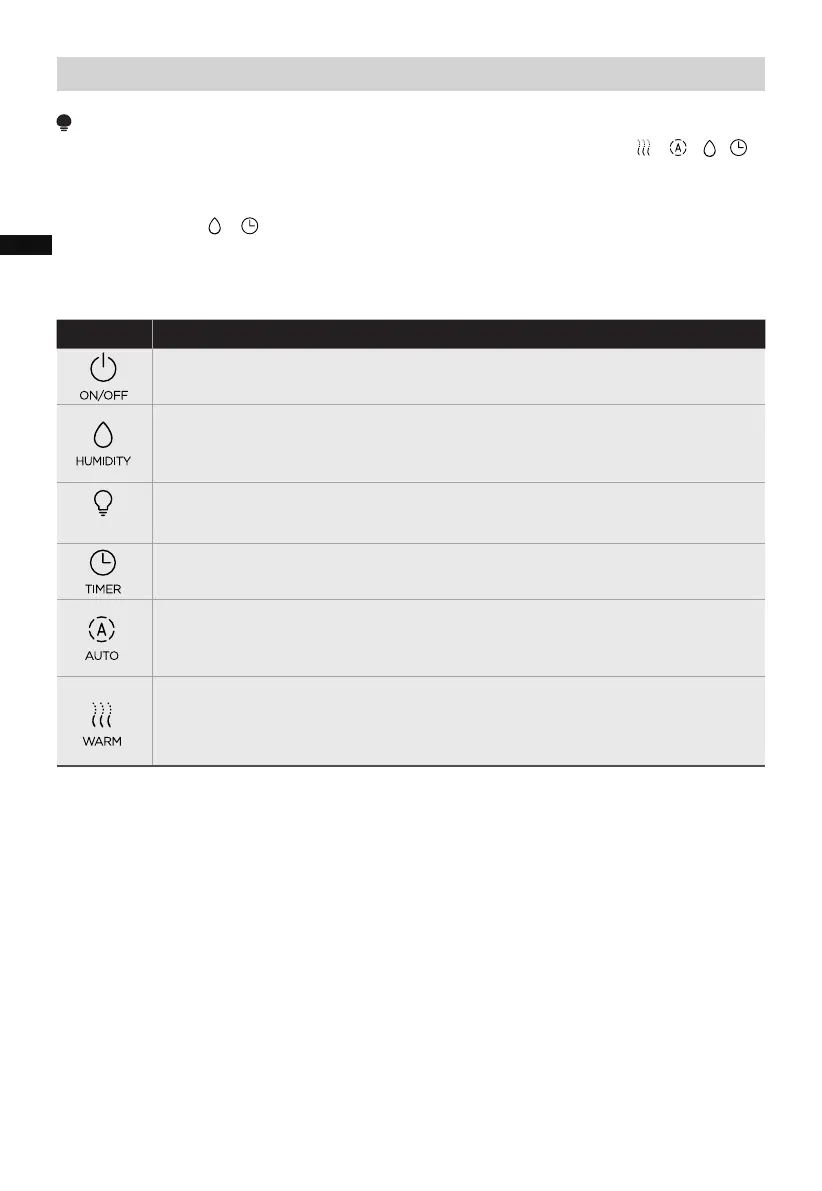 • Repeatedly tap to cycle between mist level 1, 2, and 3