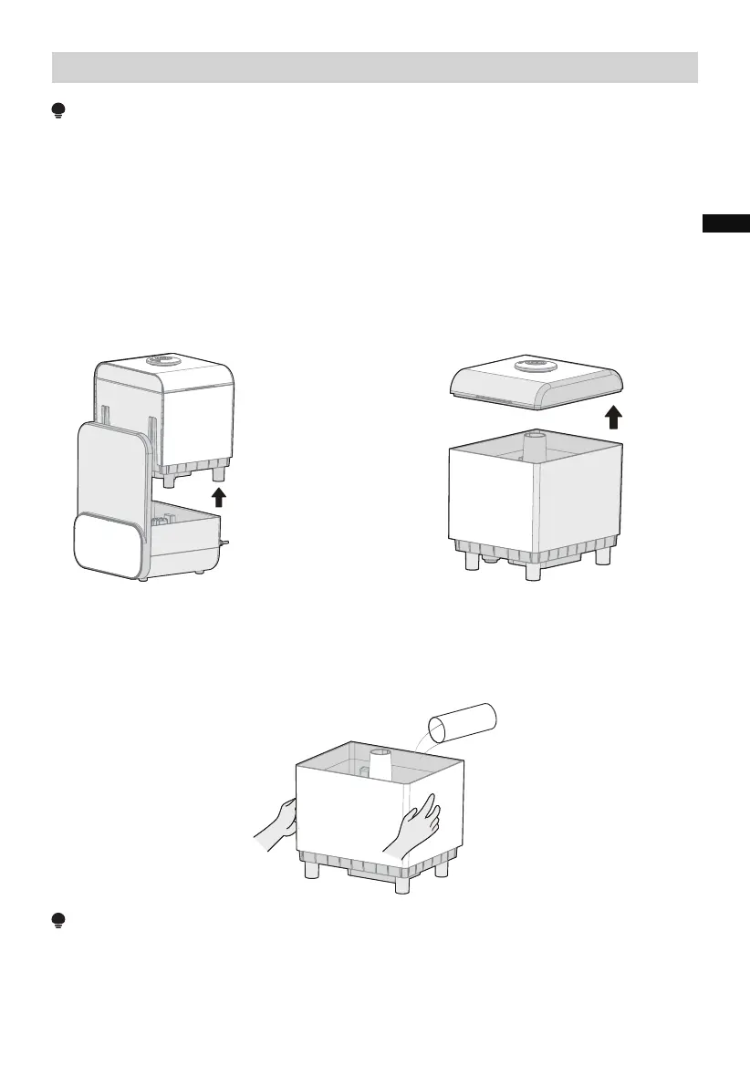 • Make sure the tank lid is covered on the water tank properly after the water is filled in