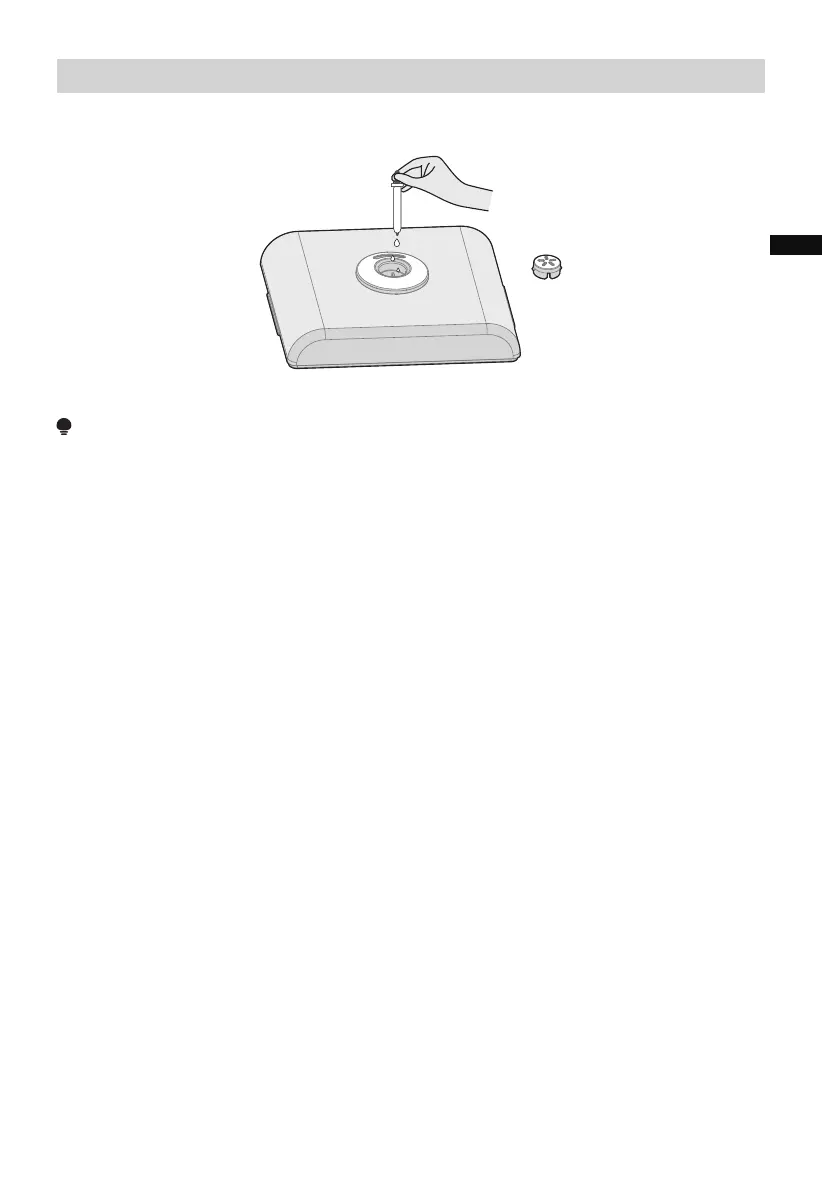 Remove the essential oil tray cap, add a drop of essential oil in the tray and then put