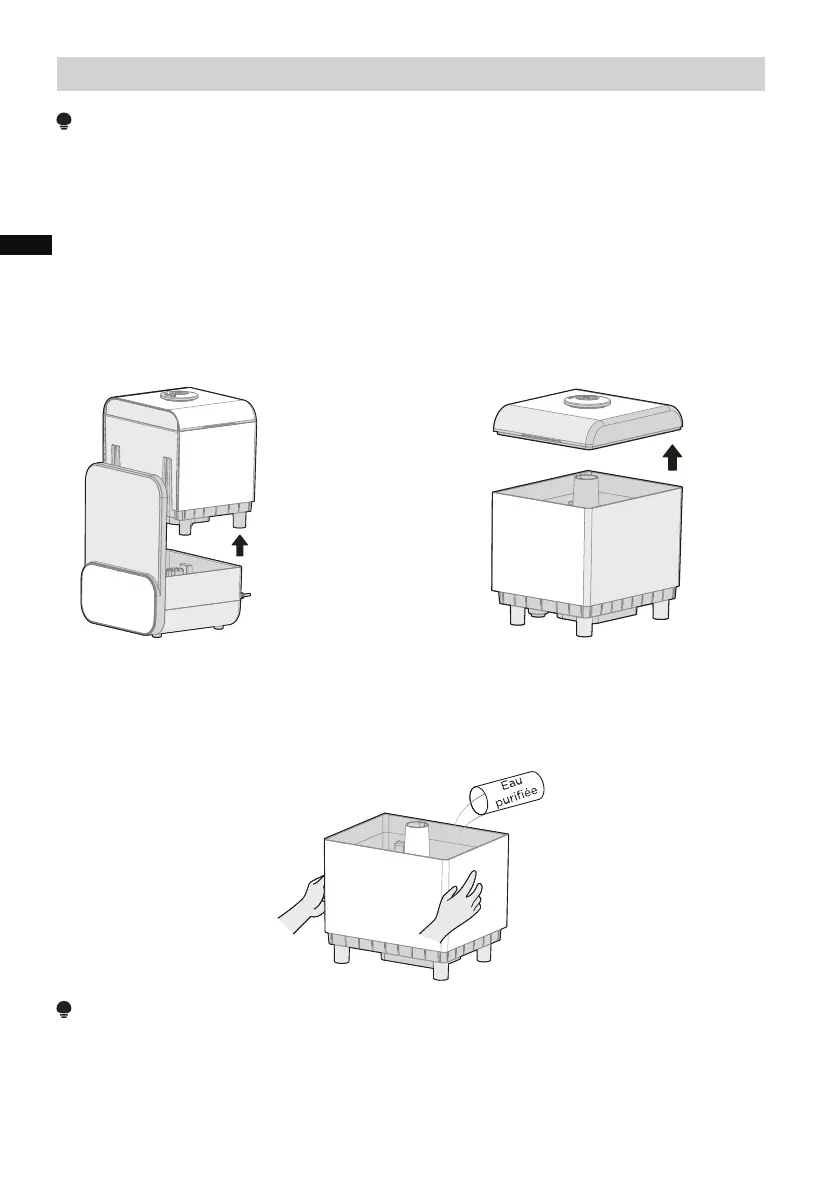 ments, etc. à l'eau. Vous pouvez cependant ajouter un liquide aromatique dans le bac